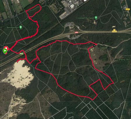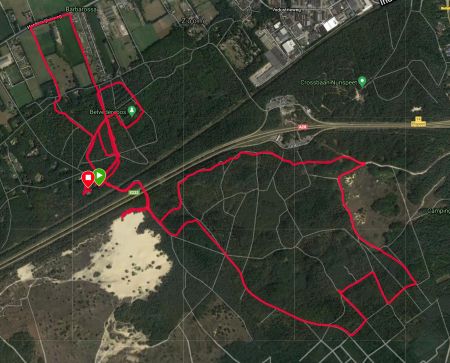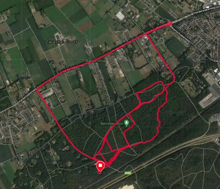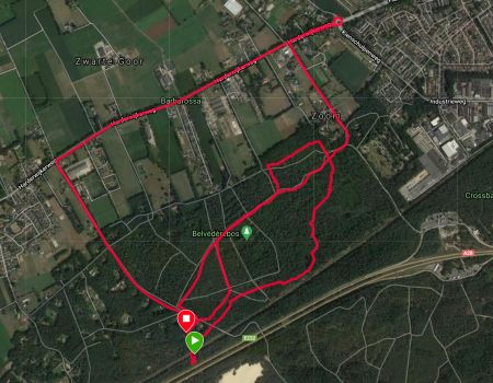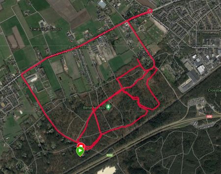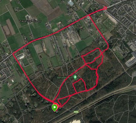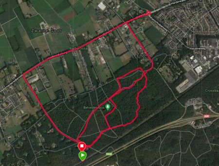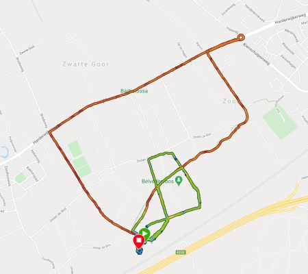 Ik zie al dat de eerste kilometer best goed gaat. Is het nu werkelijk sneller of is het beter doordat er vandaag minder storing is op het eerste stuk? Ik weet het niet maar het maakt me ook niet echt uit. Ik hobbel rustig door. We lopen richting de rotonde en keren daar weer om en gaan terug richting het bos. Het is heerlijk rustig zo op deze zondag. Het lopen gaat ook goed en ik heb eigenlijk nergens last van. Warm heb ik het wel want als je eenmaal een beetje aan me schudt, dan word ik wel lekker warm.