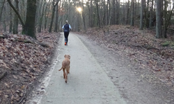 Eigenlijk denk ik dat woefje vandaag jarig is maar ik vergis me een dag. Dat geeft niet, want ik ben al op weg als ik me realiseer dat het niet vandaag is. Te vroeg verjaardags runnetje dan maar. Ik ben eerst met fleurtje op pad geweest voor een jog rondje. Dat ging eigenlijk weer heel goed. We liepen langs de weg en steeds een kilometer en daarna even wandelen tussendoor. Ze heeft nog steeds interesse in alles om haar heen en is snel afgeleid maar het lijkt toch wel wat beter te gaan. Of dit nou de manier is om met haar te lopen, weet ik nog steeds eigenlijk niet maar het begin is er zullen we maar zeggen. Onderstaande foto is niet van de run maar van de wandeling trouwens.