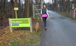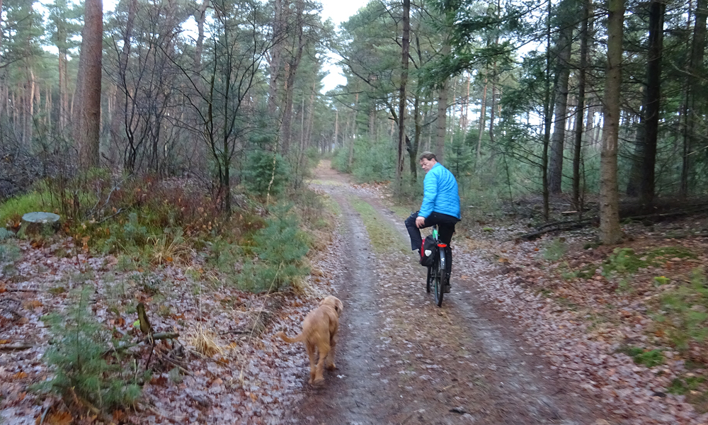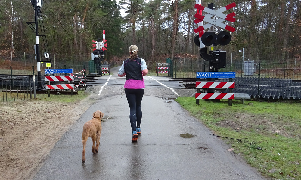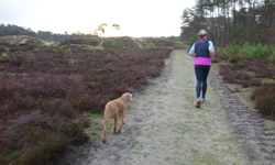 Gelukkig kunnen we heerlijk met wafje lopen. Als Fleur in de bench zit, gaan we op ad voor onze ronde. Het is een beetje somber weer maar gelukkig nu geen sneeuw of gladheid.