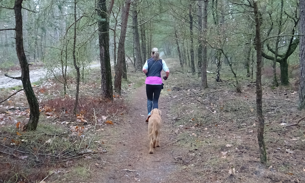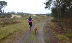Dat is dus alweer even geleden. Ik liep daar toen vanaf het Apollo hotel en was helemaal blij met mijn vondst. Nu hobbelen we eerst over het fietspad waar het ook leuk lopen is overigens. Daarna slaan we linksaf het natuurgebiedje in. Ook hier is enorm gekapt en het ziet er wat treurig uit. Voor dunne stammetjes is met een enorme machine een breed dunningspad gemaakt. Dat had wel met de hand gekund lijkt me. Maar goed we hobbelen vrolijk door. Alles is al gebeurd natuurlijk. Het watertje stroomt gelukkig wel maar een ijsvogeltje zien we niet. Al snel zijn we weer op de Beekweg en lopen we richting de Harderwijkerweg. Ik vraag me tijdens het lopen af waar ik uit zou komen als ik rechtdoor zou lopen in plaats van de Beekweg te nemen maar nu zie ik op de kaart dat ik dan op de Killenbeekweg uitkom en ik weet ook waar, want je komt in de bocht uit waar ik vaak loop en me dan afvraag waar ik uit zal komen als ik het pad neem met het richting bordje. Dat weet ik dus nu. Misschien kan ik daar wel iets mee als route. We hobbelen over de Beekweg en kijken naar de twee huizen die daar staan. Daar zouden we wel op gevallen zijn eigenlijk want het is heerlijk rustig en je kan er ook direct vanuit het huis gaan wandelen. Verderop kiezen we even voor een opengesteld landgoed maar dat blijkt alleen naar huizen te leiden en brengt ons dus verder nergens. Weer wat geleerd want ik heb altijd gedacht dat je daarmee richting het Koetshuis kon lopen maar dat is dus niet zo. We lopen via het terrein van het Apollohotel verder en komen zo al snel op het paadje tussen de weilanden door richting de Zandhuisweg. Grappig genoeg lopen we zo dus weinig langs de weg en maken er een mooie route van. Na 15 km staan we weer voor de deur. Dit was een leuk loopje en ik ben blij dat het nu met de heup zo goed gaat dat ik ook gewoon een andere route kan kiezen. Op naar de volgende!