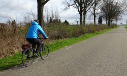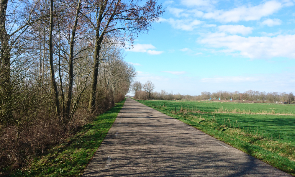 Al snel hobbelen we met wind tegen (inderdaad) langs het Veluwemeer. We komen langs de vakantieparken en eigenlijk is er niet veel te zien of te beleven langs de route vandaag. Het is stil. Ik loop op 4/1 en dat gaat op zich goed. Ik merk weinig en de heup rechts doet het ook goed gelukkig.