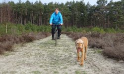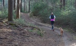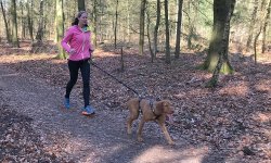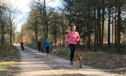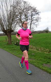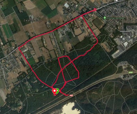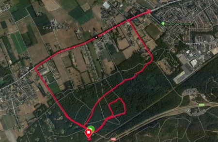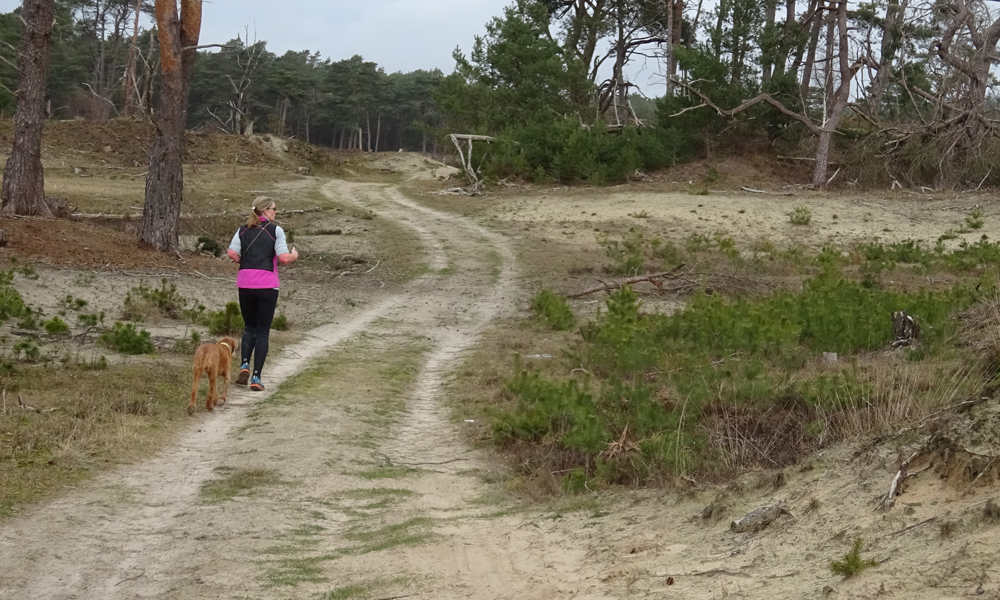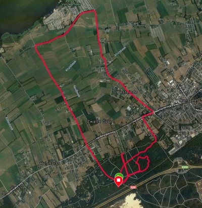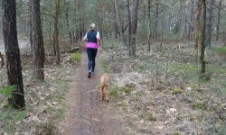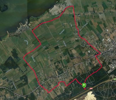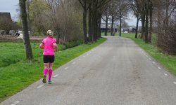 Vandaag wandelen we eerst met de dames. Er mag niemand mee want gisteren en eergisteren hebben we een mooie fietstocht gemaakt en fleur eet nog steeds nauwelijks en mag dus niet ook nog eens mee rennen dan. Jammer maar helaas. Daarom eerst een wandeling die ik als warming up gebruik. Jammer genoeg heb ik de garmin nog niet aan dus de warming up telt niet mee. Daarna probeer ik Fleur wat te laten eten en ze eet wel een bakje pens op gelukkig. Er zit dus al wat in haar maagje. Dan eindelijk op pad. We vertrekken over de brandsweg. Ik heb voor het eerst mijn rokje weer aan (het past nog) en korte mouwen zonder giletje. Dat laatste besef ik pas als we thuis zijn maar het kon prima qua weer. Als ik in beweging ben, dan doet de kachel van binnen het wel goed. We hobbelen over de brandsweg en bespreken de wind. ZZW? Dan slaan we linksaf en lopen de route als het ware tegengesteld aan normaal zodat ik langs het water windje mee heb. We twijfelen wel als we verder lopen. Hebben we straks nou niet gewoon wind tegen? We gaan even offroad en lopen dan binnendoor naar de harderwijkerweg en steken over. Ja hoor, nu we in open gebied lopen is het duidelijk. Nu wind schuin voor richting het water en daarna oostwaarts wind tegen. jammer maar helaas. Miskleun. We lopen natuurlijk stug door. S. heeft zadelpijn en stijve schouders van het fietsen. Mij valt het allemaal mee na de rit. Ik ben benieuwd of ik de hele route nu makkelijk kan lopen eigenlijk!