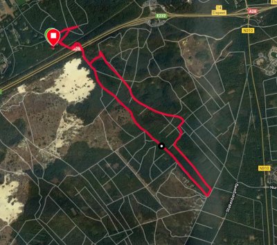 Als we weer op de Brandsweg komen, lopen we bijna het hele fietspad door het bos weer heen en terug en dan staat er eindelijk weer een keer een 20 km loop rondje op de teller. Dat is helemaal niet verkeerd en ik ben niet echt moe. We nemen wel de tijd om even goed en rustig uit te wandelen.