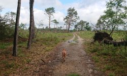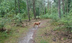 We nemen het pad via de heide en het is echt een prachtige dag. Zeker met een blije woef is het echt heerlijk. Ik kom op de heide weer een mevrouw tegen met een blinde hond die bovendien ook nog een enge ziekte blijkt te hebben en we praten even over voeding en het verschil tussen vlees en blik. Inmiddels eet Fleur weer gewoon uit haar bak dus dat is erg fijn. Maar ik weet ook het verschil tussen blik en vlees en kan haar weer wat op weg helpen.