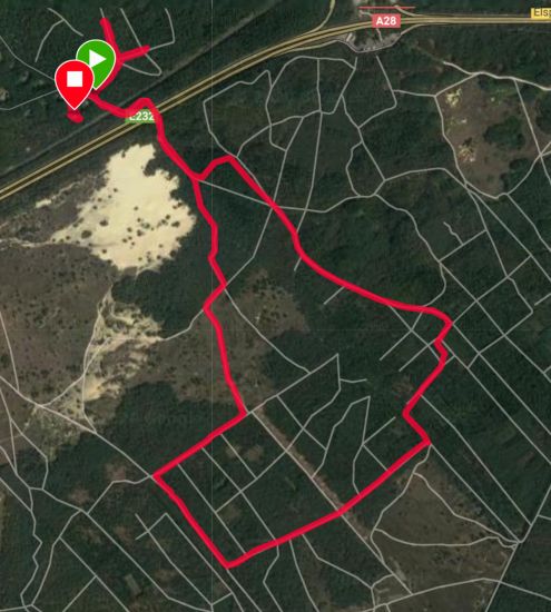Omdat ik het idee heb dat Fleur wel moe is, besluit ik de kortere variant terug te nemen dan ik van plan was. Uiteindelijk pakt dat ook prima uit want we hebben nu straks een rondje gelopen van 6.5 kilometer plus het wandelen en dan nog het uitlopen erbij. Dat is ook echt wel genoeg in de opbouw naar meer. Ik zie nog een roofvogel met prooi en aan de alarmroep vrees ik dat het een spechtje was dat daar werd weggevoerd door de rover maar that’s life natuurlijk.