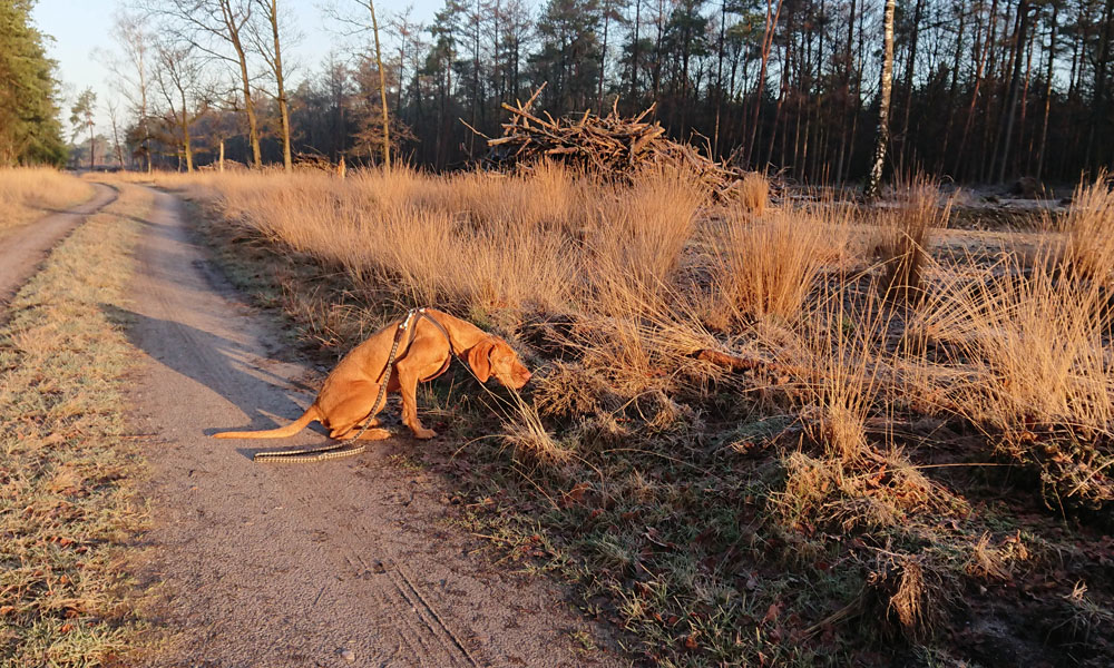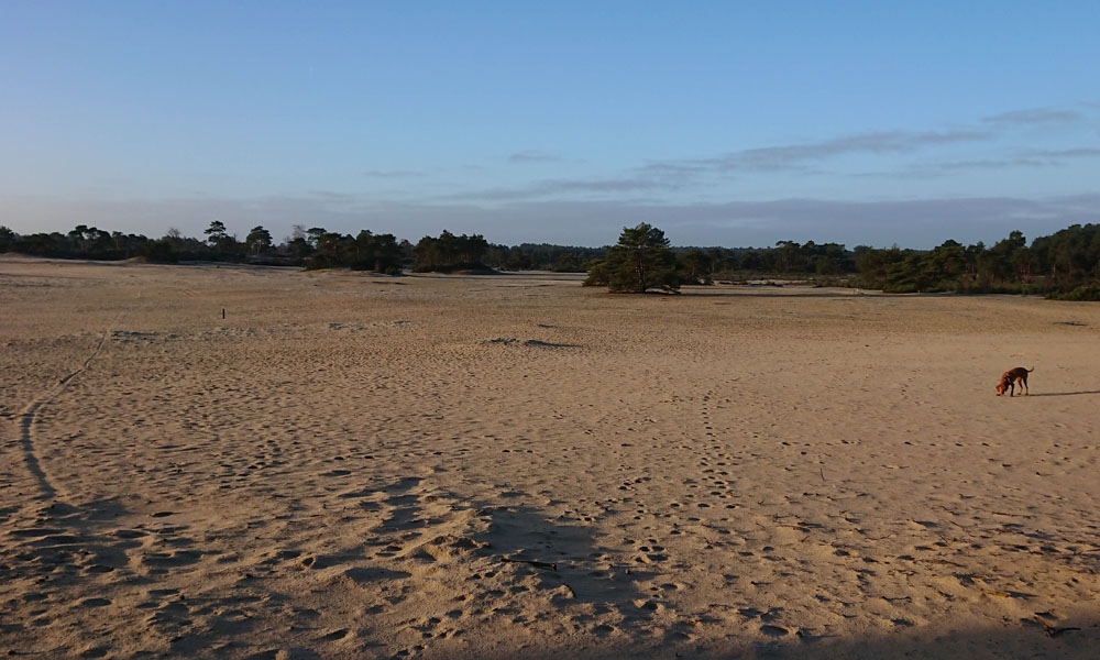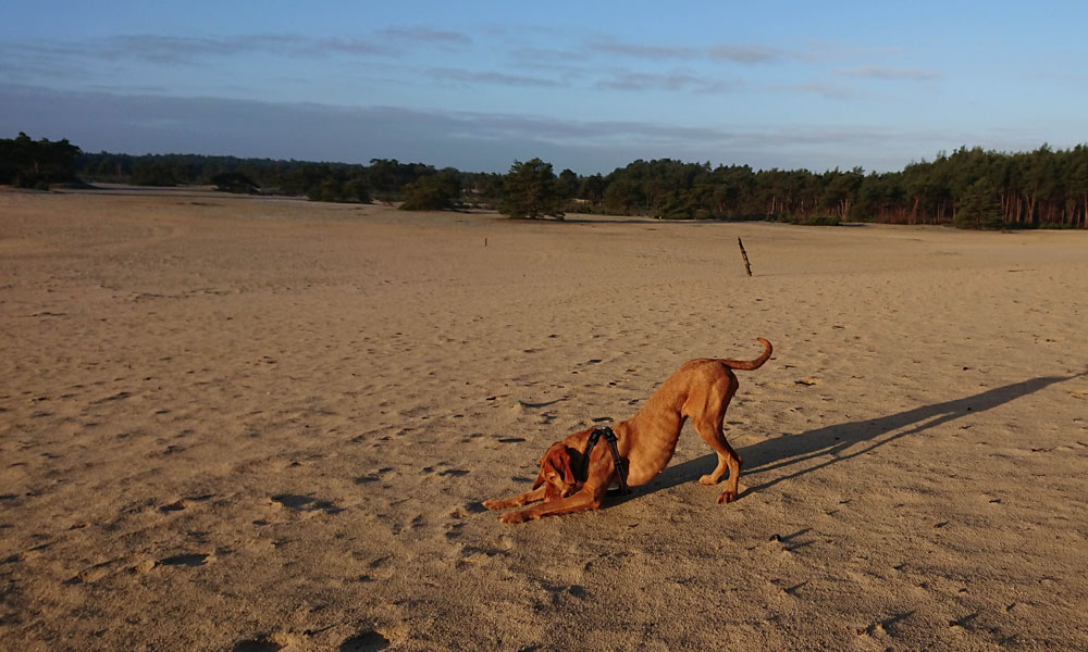 Aan het einde van de run gaan we nog even naar de zandverstuiving. Daar laat ik haar even los zodat ze nog even kan rennen en gek kan doen na al dat keurige gedrag. Dat vindt ze duidelijk geweldig en ik ook. Daarna gaan we nog even in de tuin aan de slag. Op naar een nieuwe dag en volgende run.