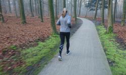 Vandaag vertrek ik voor een rondje met Fleur. Ik heb eergisteren de laatste les afgerond van Evy Start2Run en loop dus nu weer 32 minuten achter elkaar. Dat was denk ik goed om te doen zo na al die maanden halfslachtig lopen. Vanaf nu kan ik dus gaan afwisselen met Fleur, langere stukken continu en de afstand uitbreiden. Van alles wat dus. Ik ben benieuwd hoe dat zal gaan eigenlijk. We gaan dus eerst lekker wandelen zodat ze uitgebreid kan plassen en daarna gaan we terug naar huis om het tuigje om te doen en om mijn renshirt aan te trekken. Het is best koud maar het voelt allemaal goed met een mooie lucht. Ik kies voor 5 minuten renstukjes met 40 seconden wandelen tussendoor. Op die manier leert Fleur tempo wisselingen te volgen en hoeven we niet het hele stuk te lopen. Overigens kan Fleur gewoon een soort gestrekte stap bij mij doen om me bij te houden. Heel frustrerend maar goed, misschien gaat ze ooit over in een zielig drafje. Dat staat wel netter. We starten meteen bij het hek en moeten dus even vertragen bij de hekken maar dat is niet erg. Daar leert ze ook weer van en het gaat goed. Eigenlijk doet ze het wel heel goed. Ik draag nu die oranje Stuntpuppy band om mijn middel en de dikke Welkoop riem bij haar Ezydog tuigje. Het is niet de bedoeling dat ze trekt zoals we eerst gelopen hebben met het canicross tuigje dus het is weer even omschakelen. Maar als ik terug denk aan de eerste loopjes met haar een jaar geleden is er veel veranderd. Toen rukte ze me de straat over en zwalkte ze van links naar rechts. Nu voelt ze duidelijk wel de zachte correcties en begint ze te snappen dat het prettiger is om gewoon rustig naast me mee te lopen. Echt leuk en op sommige stukken vergeet ik bijna dat ze zo netjes meeloopt want dan voel je haar bijna niet en zie ik alleen haar kopje. Ik ben erg benieuwd hoe het komend jaar zal gaan en of ze echt gaat wennen zo aan het lopen.