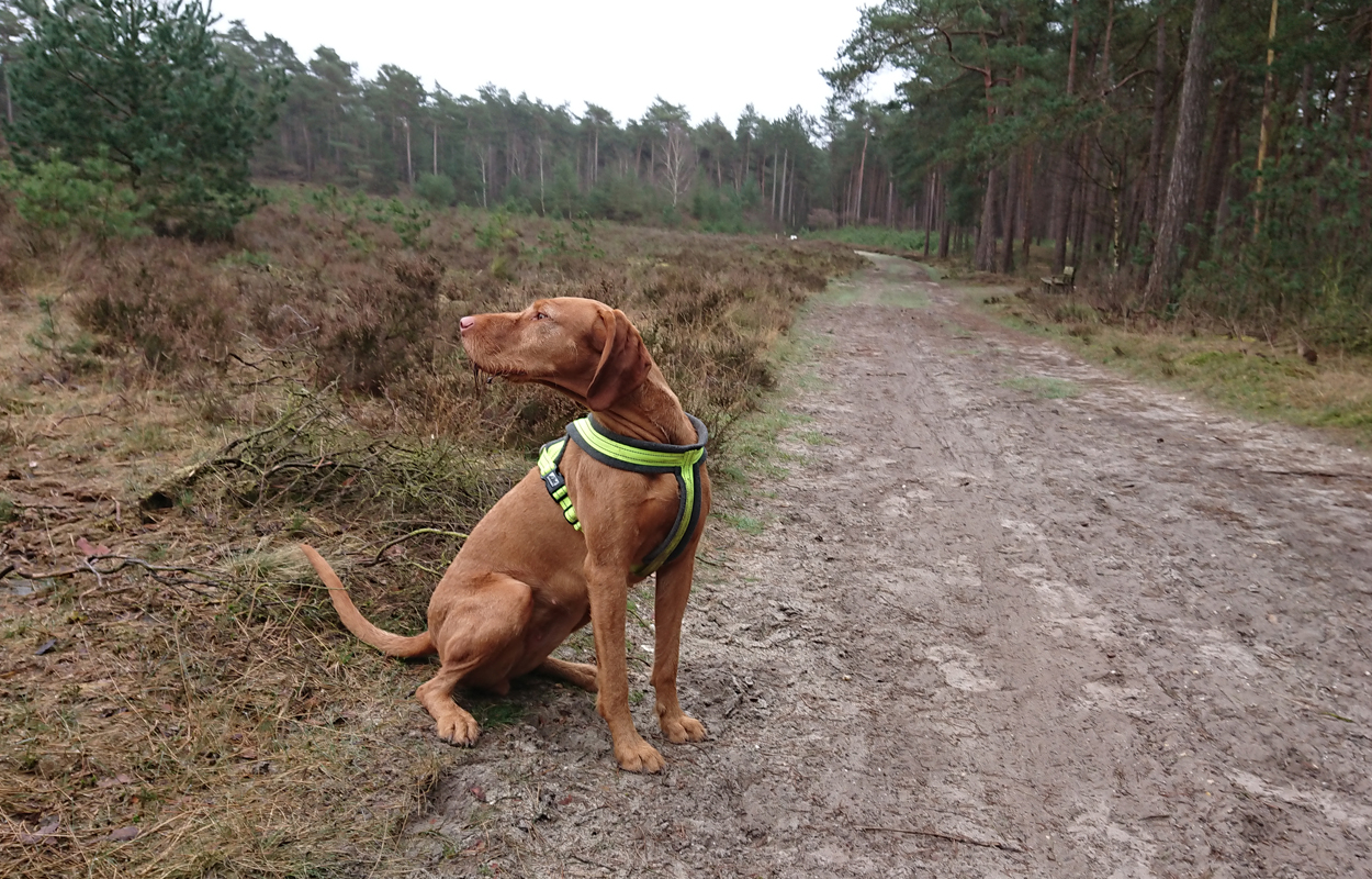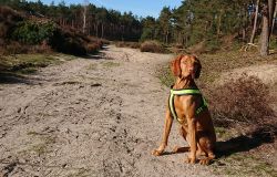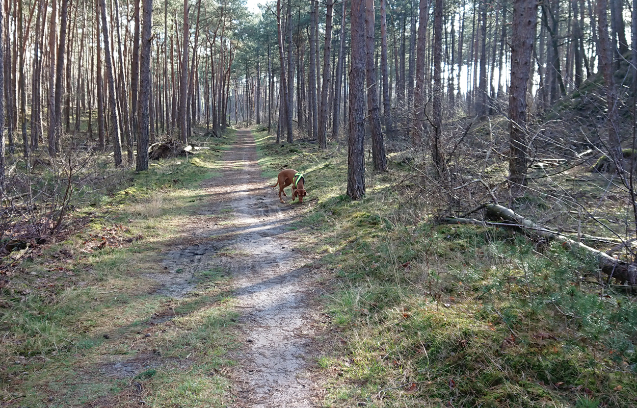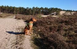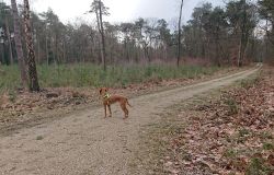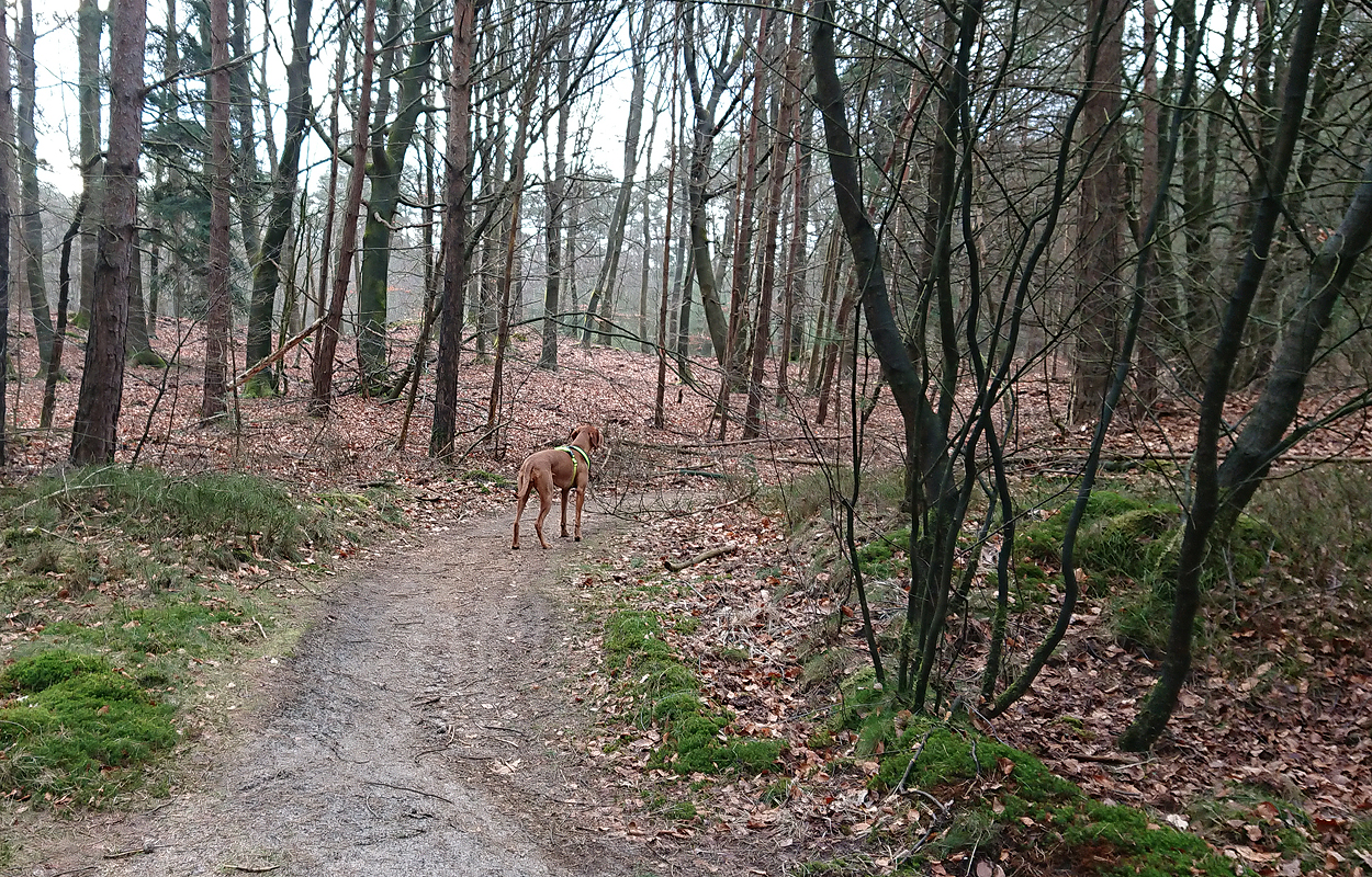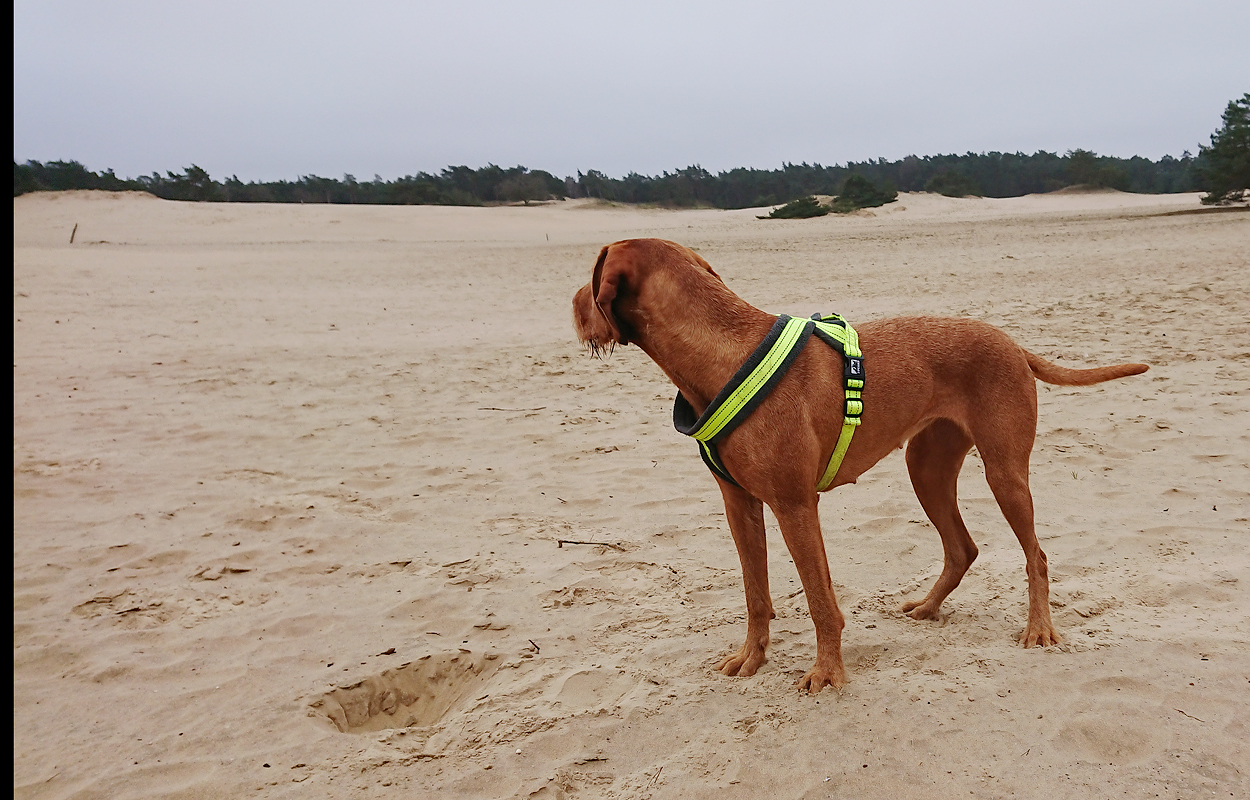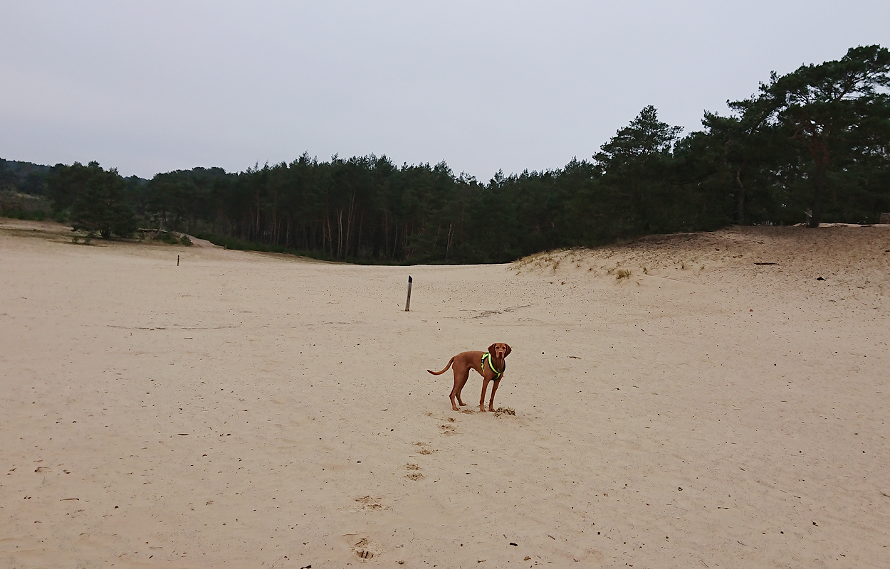 Maar ik kom al snel op de zandvlakte met niks….. Hier kom ik niet echt verder dus ik moet toch terug en dan maar om die dame heen. Ik heb Fleur inmiddels aan de riem. Beter ook want ze rent maar rond dus dit is rustiger en het gaat inmiddels prima aan de riem.