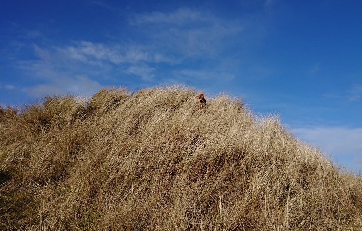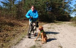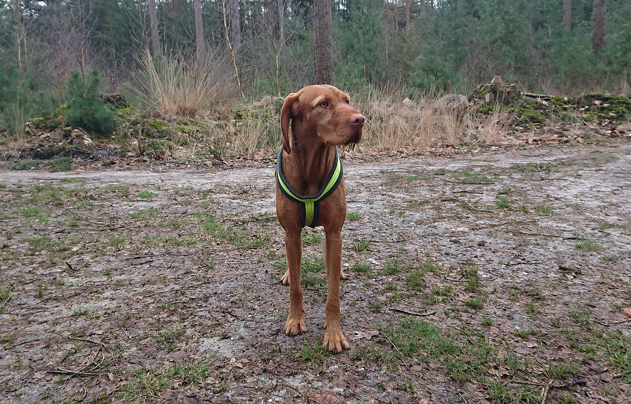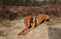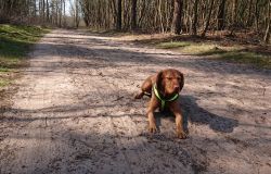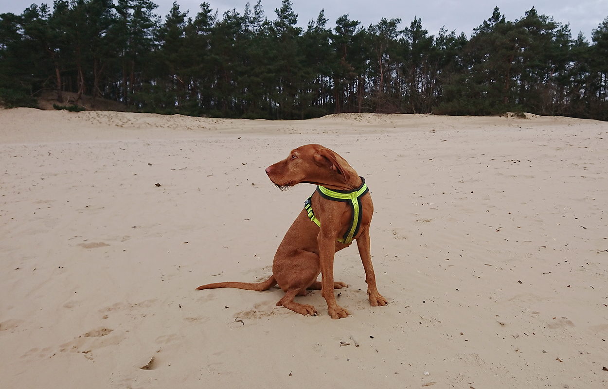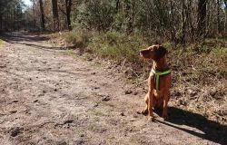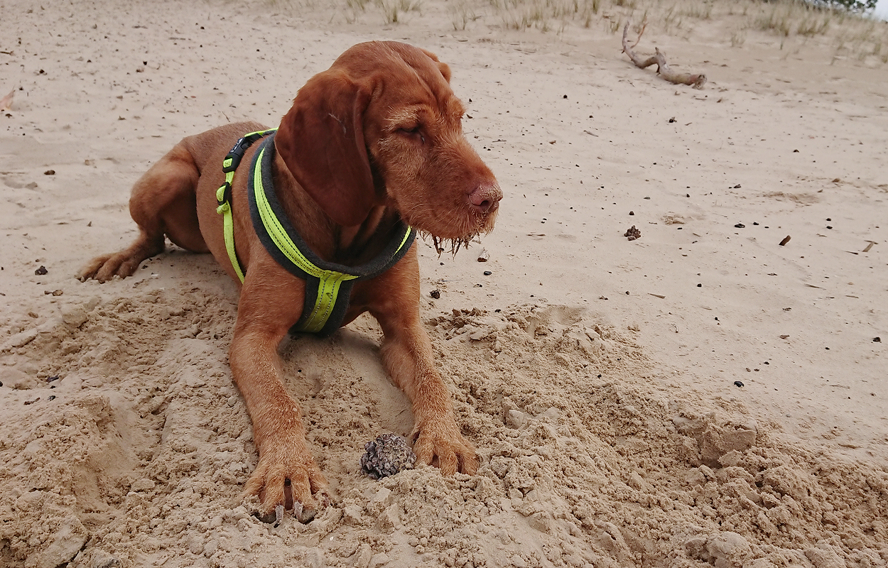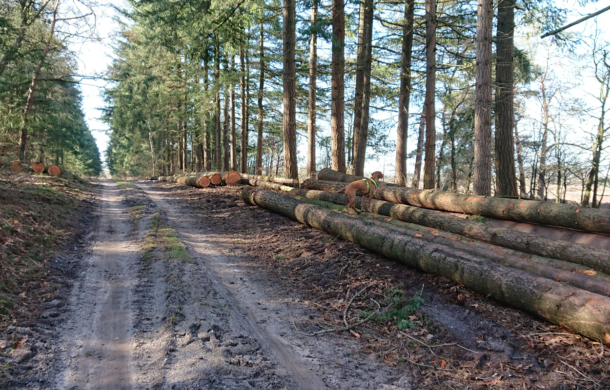 Maar ik kom al snel op de zandvlakte met niks….. Hier kom ik niet echt verder dus ik moet toch terug en dan maar om die dame heen. Ik heb Fleur inmiddels aan de riem. Beter ook want ze rent maar rond dus dit is rustiger en het gaat inmiddels prima aan de riem.