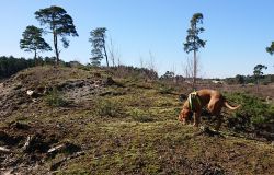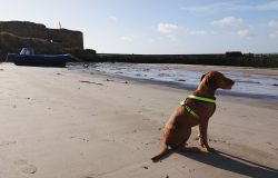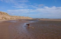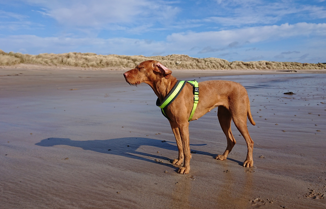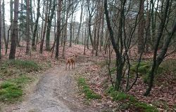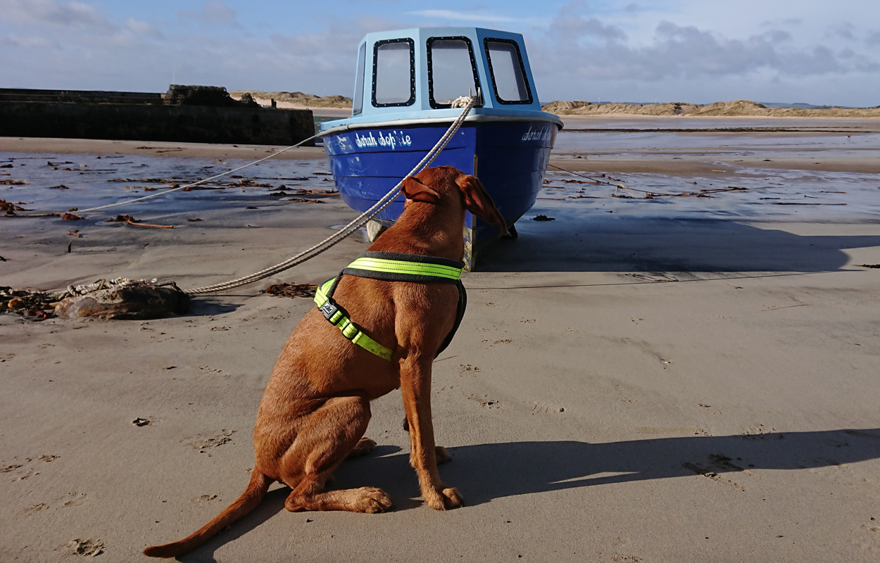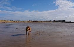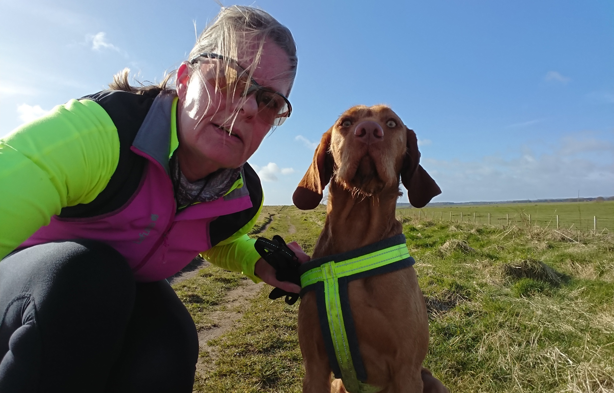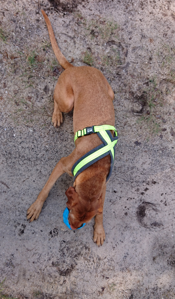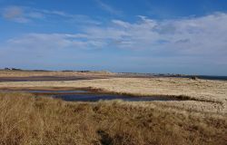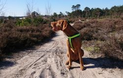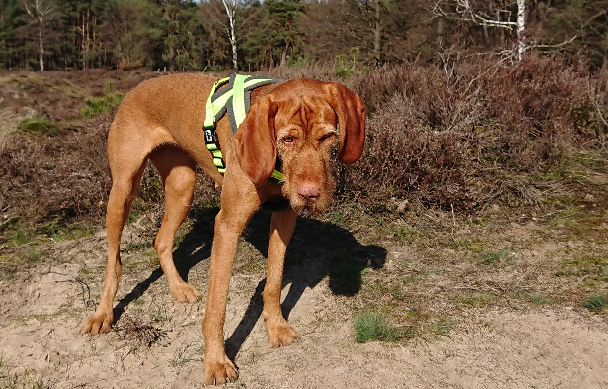 Maar ik kom al snel op de zandvlakte met niks….. Hier kom ik niet echt verder dus ik moet toch terug en dan maar om die dame heen. Ik heb Fleur inmiddels aan de riem. Beter ook want ze rent maar rond dus dit is rustiger en het gaat inmiddels prima aan de riem.