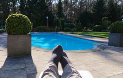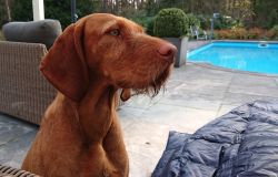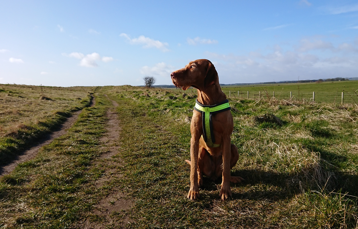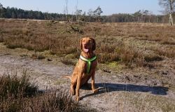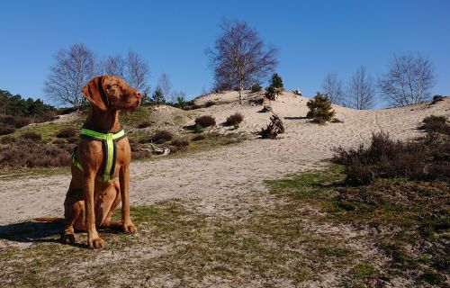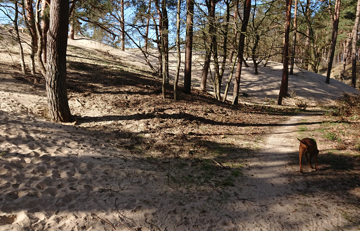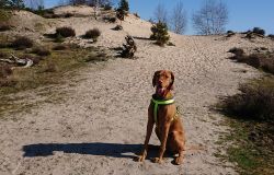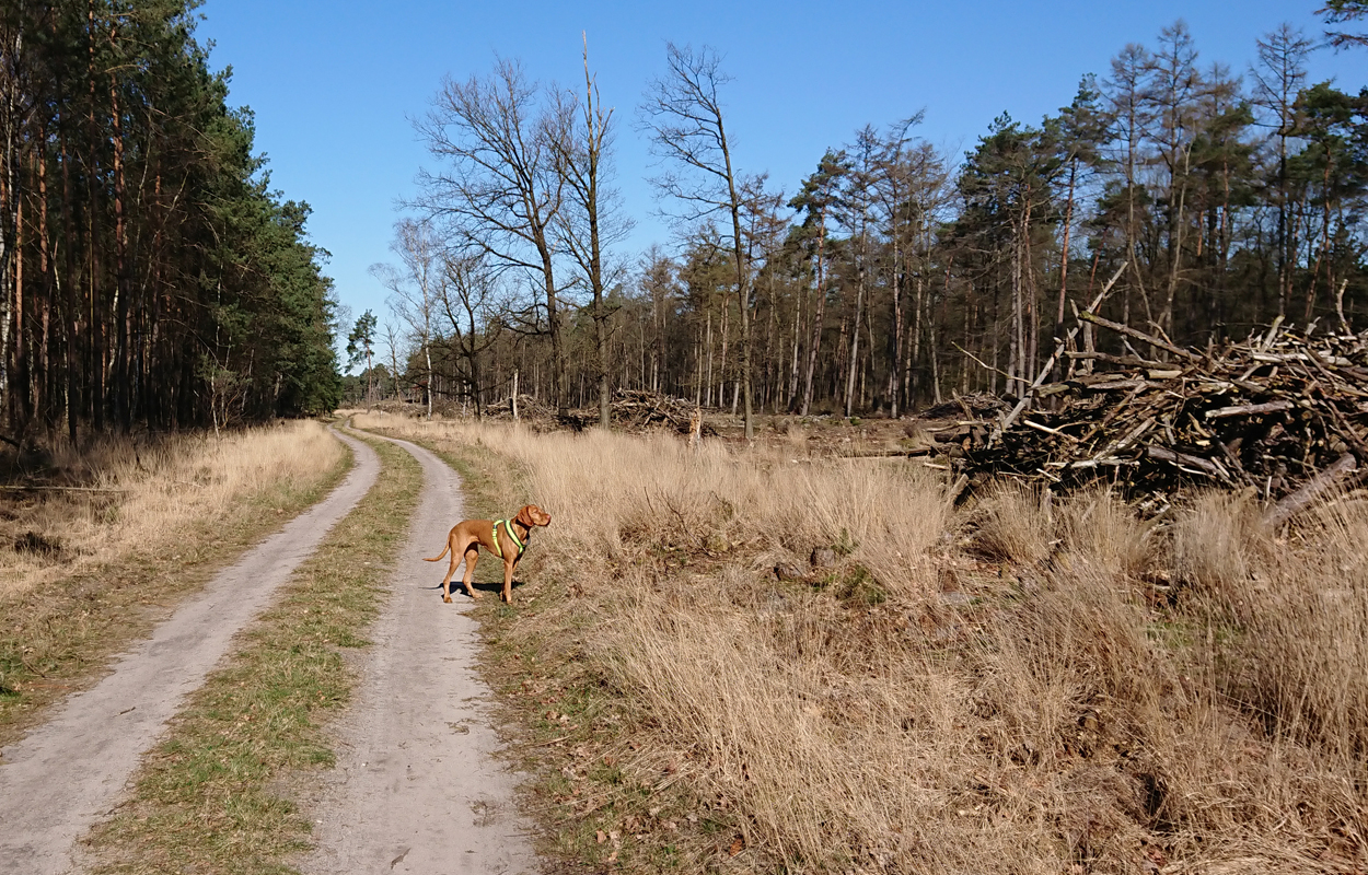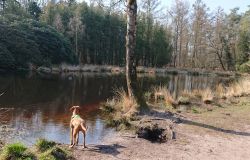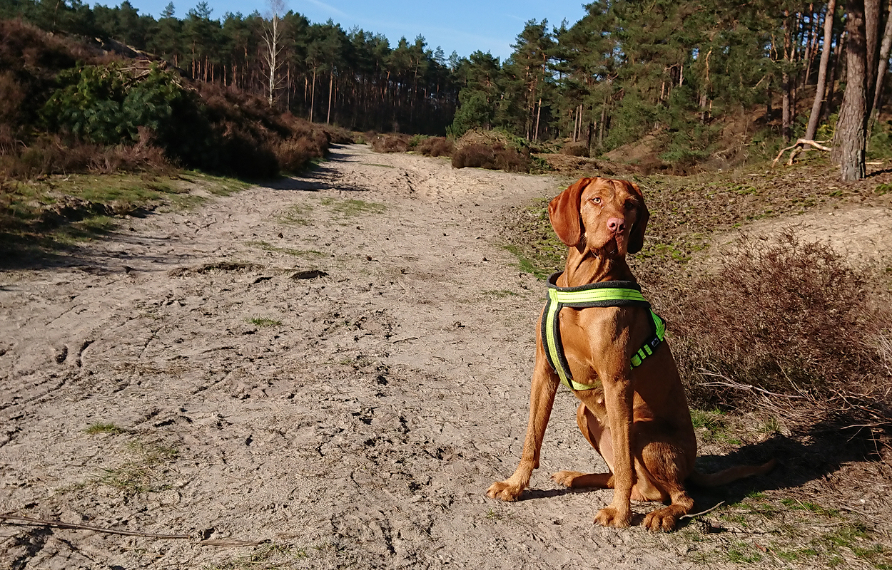 Vandaag weer een stralende dag. Wat boffen we zeg! S. deed het eerste plas rondje al met Fleur en ik ga dus later op pad voor een leuke ronde. Vandaag ga ik weer eens een andere route proberen. Ze is hartstikke braaf dus het is ook echt leuk om een beetje te omgeving verder te verkennen. Ziva was natuurlijk toch alweer wat ouder toen we hier kwamen wonen en het laatste jaar durfde ik niet meer zo goed zomaar te gaan lopen met het risico dat we te ver af zouden dwalen. Grappig genoeg zie ik bij het zoeken naar de foto’s van vandaag dat ik vorig jaaar ook lekker gelopen heb met Ziva, dat het mooi weer was en dat we net begonnen waren met het zwembad zomerklaar te maken nadat de oude bewoners het groen hadden laten worden. Op de foto’s onderaan dit postje zie je het verschil. Andere hond, andere kleur water! Het begin van de route ken ik natuurlijk gewoon. Ik wandel eerst even aan de overkant met haar en loop daarna richting het spoor en de snelweg. Daar steek ik over en neem het smalle pad direct langs de zandverstuiving en het hek. Deze keer dus niet eerst naar het uitzichtspunt en dat is even wennen voor Fleur want ze wil aanvankelijk daarheen. Opletten dus en lekker meelopen! Daarna hobbelen we over het smalle pad en lopen over het zand naar de parkeerplaats bij de Klarenweg.