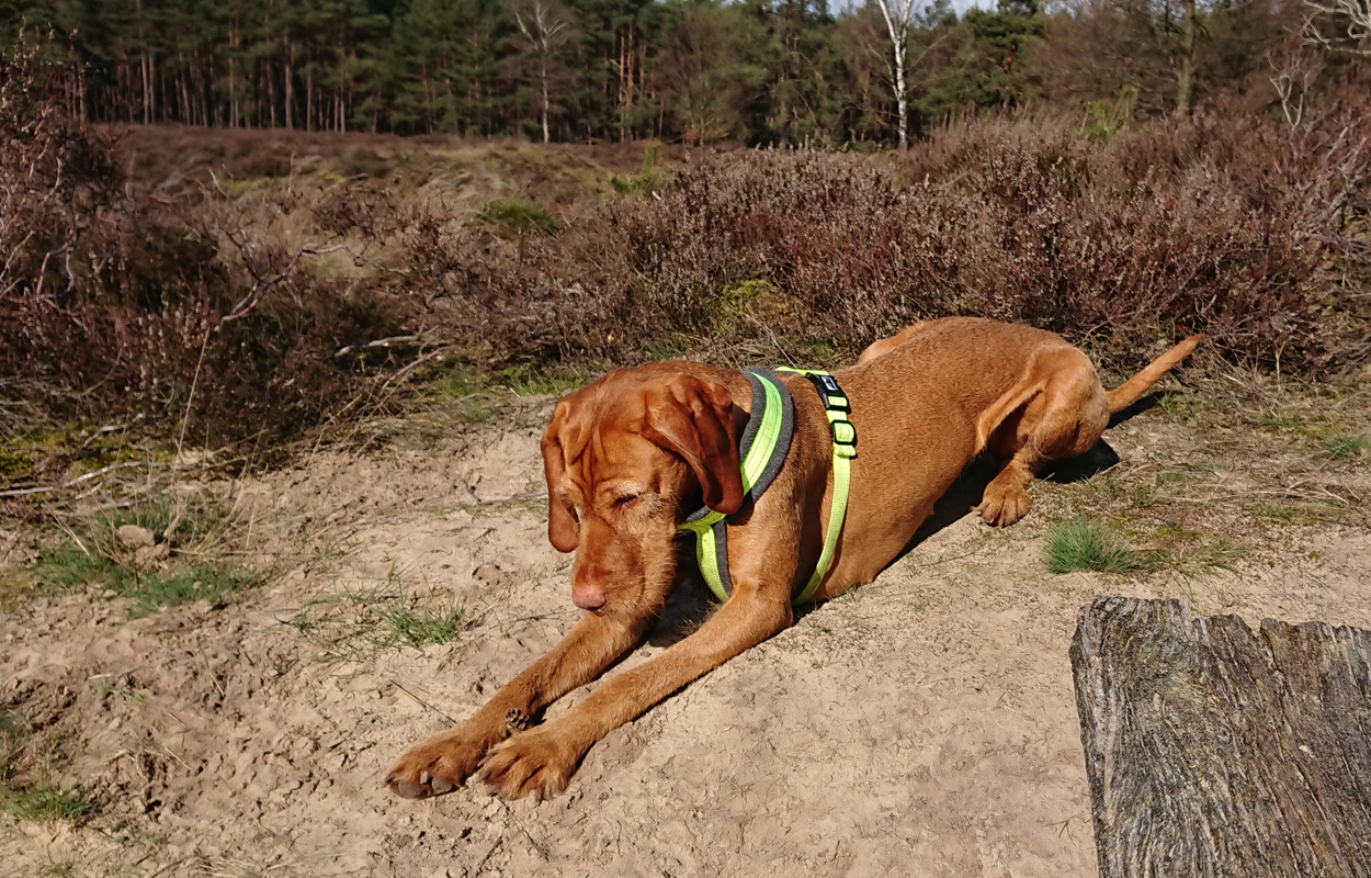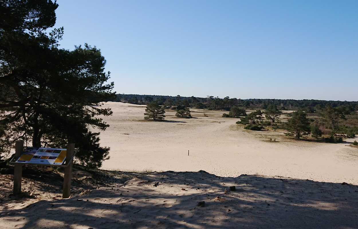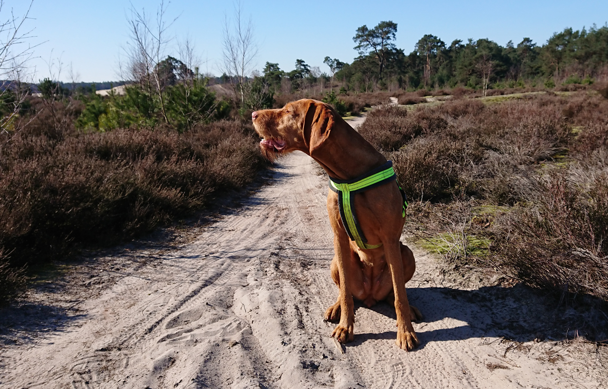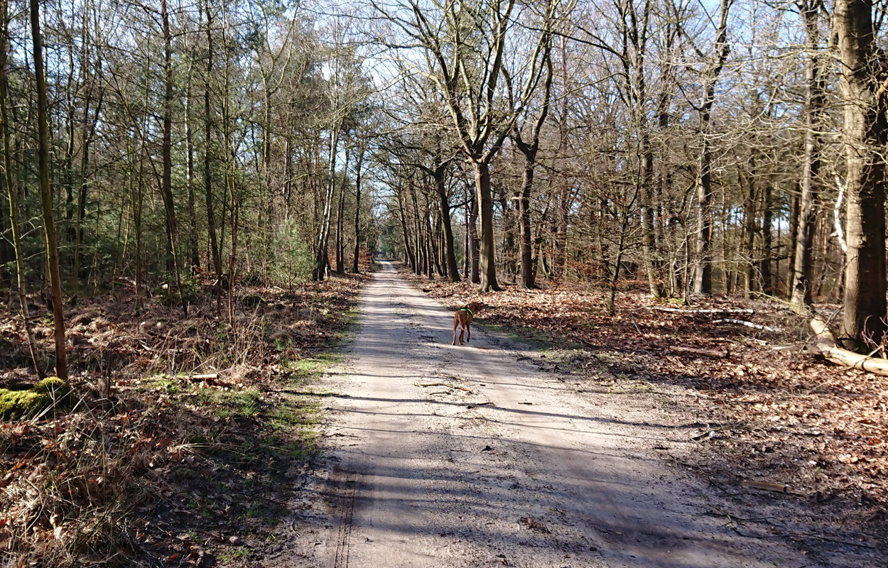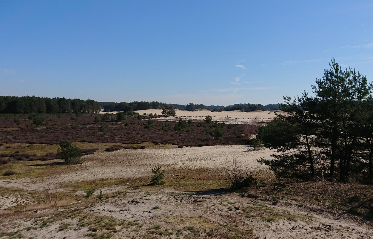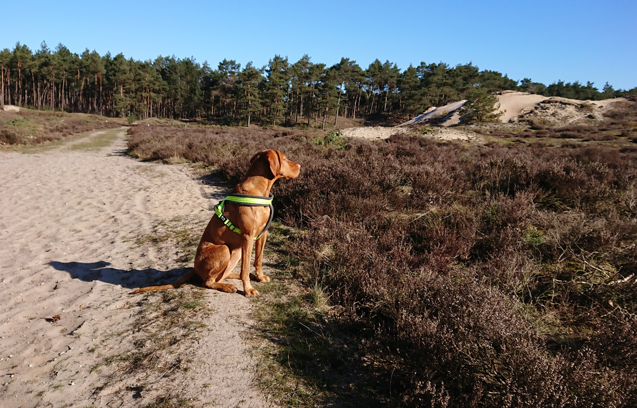 Ik besluit niet helemaal door te lopen richting de Leuvenumsebeek maar linksaf te slaan. Ik zie ergens fietsers rijden dus er is een goed pad denk ik. Ik hobbel door en kijk ook vaak even op de kaart waar ik eigenlijk heen ga en moet. Ik wil niet verzanden op het zand hahaha. Het is enorm uitgestrekt en leeg hier. Heel on Nederlands eigenlijk als je om je heen kijkt. Meestal kan je niet ver kijken of zie je wel weer een weg of auto’s. Als ik rechtsaf wil slaan, zie ik de lopers weer aankomen en daardoor zie ik niet de dame die verderop op het zand zit te mediteren in de zon. Fleur ziet haar wel helaas. Ik roep haar terug en ze komt keurig weer aangerend (braaf) maar de dame is boos en was al opgestaan en is enorm aan het schelden. Ik hoor dat niet door de wind die de andere kant op staat maar iik roep wel mijn excuses. De dame gaat maar door met tieren waarop ik uiteindelijk maar zeg dat ze misschien nog even door moet mediteren. Dat hoort zij blijkbaar wel want vervolgens krijg ik keihard ‘are you fakking kidding me’ naar mijn hoofd geslingerd. Dat hoor ik dus wel. Ik hoor nog iets over Staatsbosbeheer en praten en omdat ik geen zin hem om pontificaal gedeeld te worden op social media als zo’n asociaal met loslopende hond (want ik was immers fout) loop ik de andere kant maar op. Zucht. Stom gedoe. Natuurlijk was ik fout met loslopende hond, maar ze kwam keurig terug en ik bood al mijn excuses aan dus meer kan ik niet echt doen behalve doorlopen.