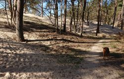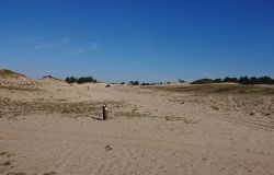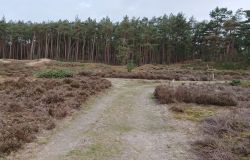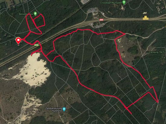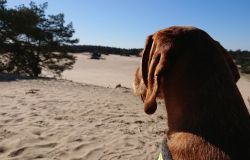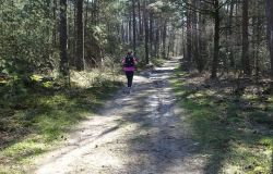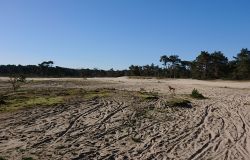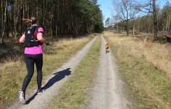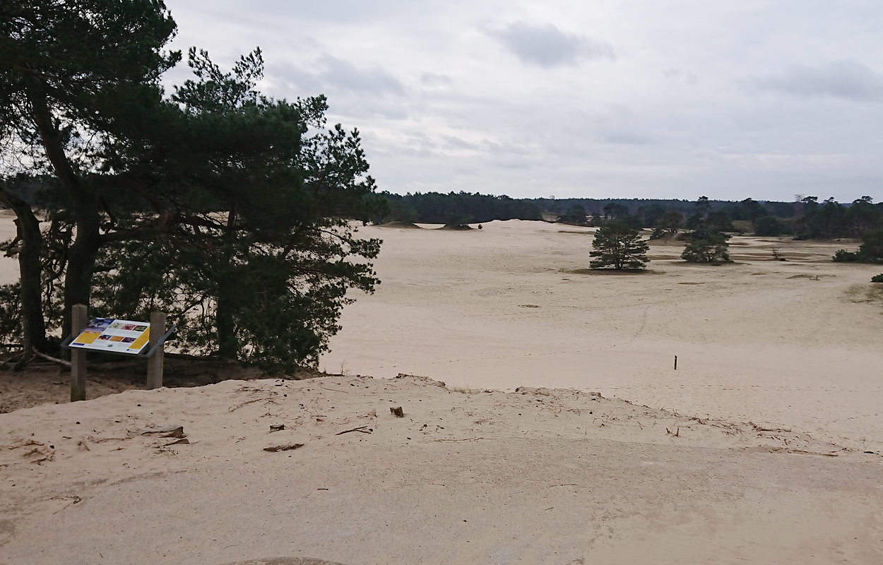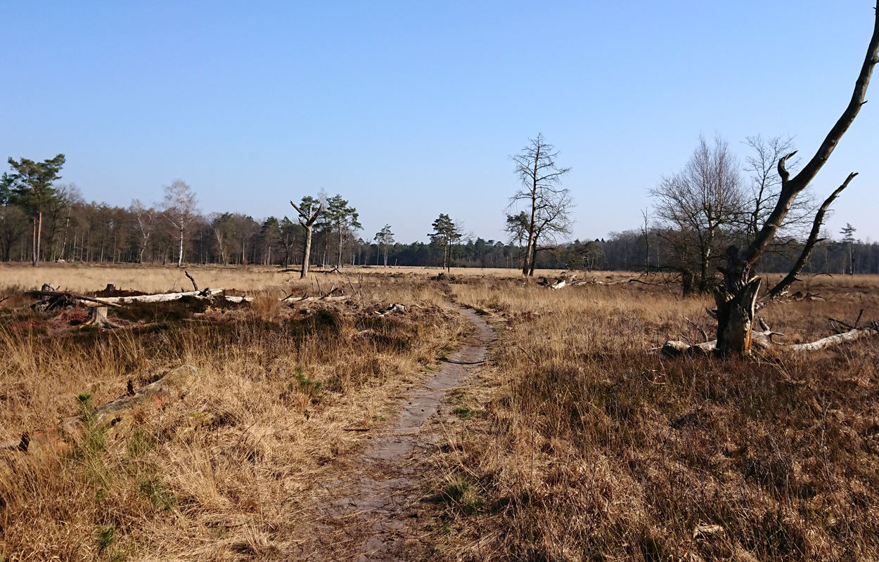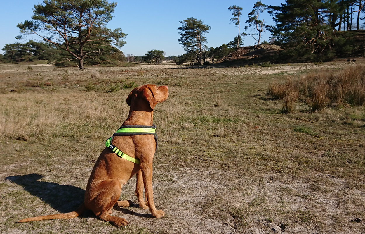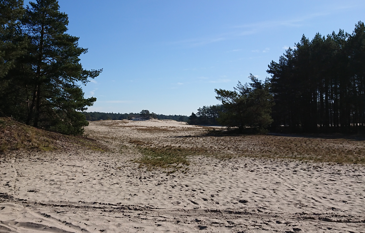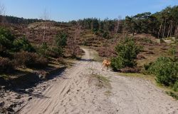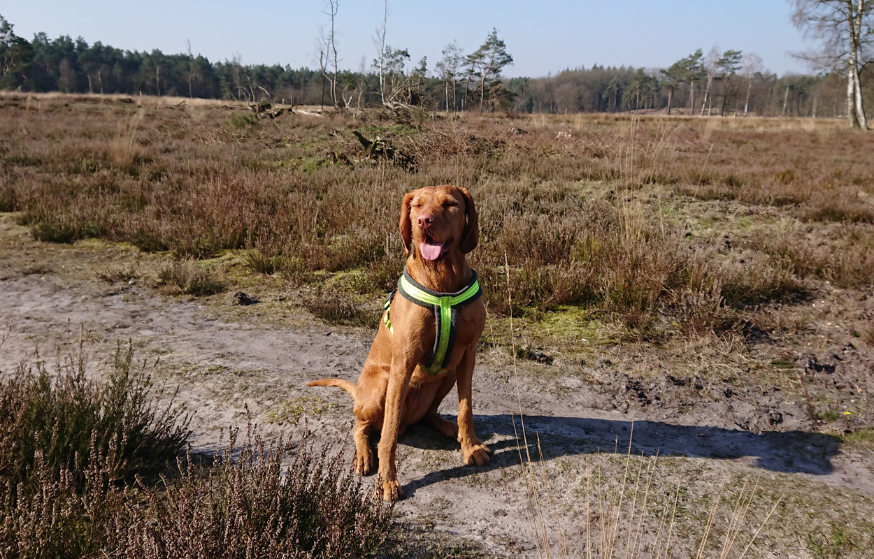 Ik besluit niet helemaal door te lopen richting de Leuvenumsebeek maar linksaf te slaan. Ik zie ergens fietsers rijden dus er is een goed pad denk ik. Ik hobbel door en kijk ook vaak even op de kaart waar ik eigenlijk heen ga en moet. Ik wil niet verzanden op het zand hahaha. Het is enorm uitgestrekt en leeg hier. Heel on Nederlands eigenlijk als je om je heen kijkt. Meestal kan je niet ver kijken of zie je wel weer een weg of auto’s. Als ik rechtsaf wil slaan, zie ik de lopers weer aankomen en daardoor zie ik niet de dame die verderop op het zand zit te mediteren in de zon. Fleur ziet haar wel helaas. Ik roep haar terug en ze komt keurig weer aangerend (braaf) maar de dame is boos en was al opgestaan en is enorm aan het schelden. Ik hoor dat niet door de wind die de andere kant op staat maar iik roep wel mijn excuses. De dame gaat maar door met tieren waarop ik uiteindelijk maar zeg dat ze misschien nog even door moet mediteren. Dat hoort zij blijkbaar wel want vervolgens krijg ik keihard ‘are you fakking kidding me’ naar mijn hoofd geslingerd. Dat hoor ik dus wel. Ik hoor nog iets over Staatsbosbeheer en praten en omdat ik geen zin hem om pontificaal gedeeld te worden op social media als zo’n asociaal met loslopende hond (want ik was immers fout) loop ik de andere kant maar op. Zucht. Stom gedoe. Natuurlijk was ik fout met loslopende hond, maar ze kwam keurig terug en ik bood al mijn excuses aan dus meer kan ik niet echt doen behalve doorlopen.