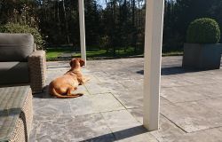 Als ik weer op het pad ben, kan ik weer lekker verder hobbelen. Er zitten twee dames op een bankje (op afstand van elkaar) en we raken even gezellig aan de praat. Ook over die mediterende dame en een van de dames had dezelfde opmerking als ik: die moet wat meer mediteren.Ik ga weer verder en geniet van mijn hondje en de omgeving. Ik geloof niet dat ik hier vaak was met Ziva en misschien wel helemaal niet.