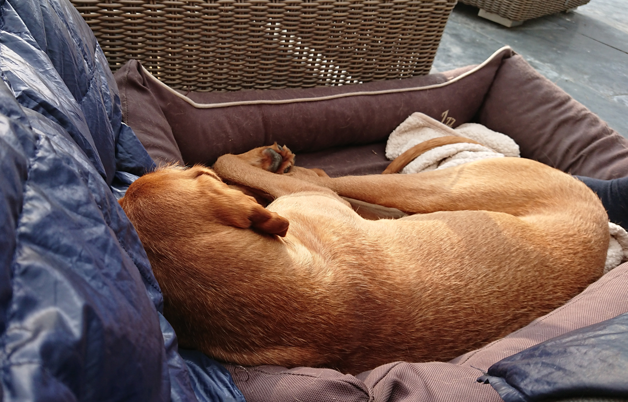 Na 12 km staan we weer voor de deur. Het voelde allemaal wat verder weg en wat langer maar het was wel erg mooi zo. We gaan in de middag lekker luieren in de tuin. Fleur doet heerlijk rustig en kan ook gewoon in haar mand buiten liggen slapen. Dat slapen lijkt mij ook wel wat nu.