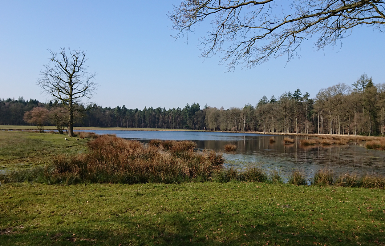 Hier ga ik dus niet linksaf maar ga verder over het pad langs het hek. Dat betekent dat ik straks op een heel mooi open stukje ga uitkomen. Daar ben ik echt lang niet geweest! Ik kom andere lopers tegen op het smalle pad maar we houden heel makkelijk afstsand en praten even met elkaar (ook van afstand). Leuk zo even een babbeltje met anderen.