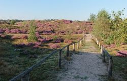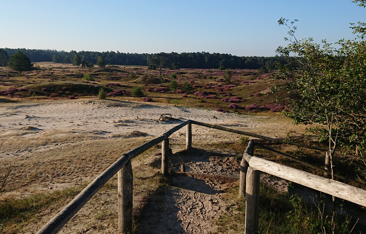 Ik loop verder als ik even gekeken heb en ga naar het uitkijkpunt bij de trappen. Het is echt prachtig met de heide in bloei.