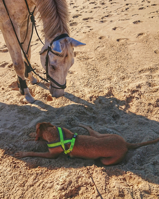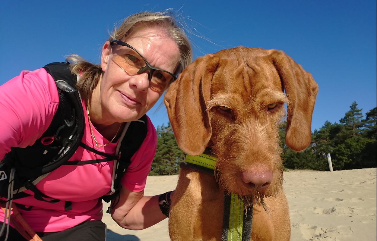 Als ik weer op onze eigen zandverstuiving ben aangekomen, maak ik een kiekje van Fleur en mij. Wat is het toch een lekker ding