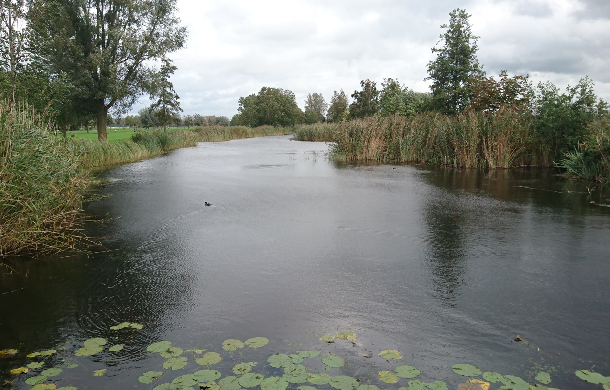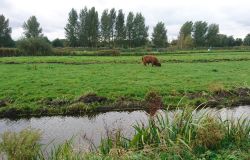 Daarna gaan we via de ‘s Gravenweg richting de golfbaan. We bekijken het huis dat hier gebouwd is. Toen ik er nog liep was er alleen nog een oud vervallen ding maar nu staat er een kast van een huis met stallen en een paardenbak. Mooie plek! Via de ‘s Gravenweg komen we weer terug bij de golfbaan en we besluiten via het lange pad dwars door Hitland weer terug te lopen. Genoeg is genoeg. Overigens is het weer wel erg opgeknapt en lopen we nu in het zonnetje. Niet slecht! Ik hoop dat ik hier nog een keer lekker kan lopen. Ik heb nog meer vouchers voor het hotel dus dat komt vast wel goed. Ik vond het wel erg leuk om weer te doen. De polder moeten we nog gaan bekijken, een kano tochtje door de Krimpenerwaard zou leuk zijn met Fleur en ook de Rotte moeten we nog even doen. Komt goed!