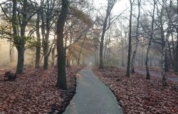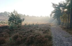 Ik heb weer een paar dagen niet gelopen. We hebben van alles en nog wat gedaan. Boten gekeken, onze boot te koop gezet en al kijkers gehad eergisteren. Het is best druk geweest dus dan komt het er soms niet van. Vandaag weet ik nog niet zeker hoe ik zal gaan lopen. De spoorweg overgang bij de Brandsweg is dicht dus ik zal in ieder geval een andere route dan normaal moeten nemen. Brengt of haalt S me ergens? Of kies ik voor iets anders? Omdat het huis nog in diepe rust is als ik vertrek, laat ik S. uitslapen. Ik ga gewoon op pad en zie het wel. Ik denk dat ik aan de andere kant de overweg neem en dan achter het hek langs het spoor weer terug loop en de normale route kies. Terug kan ik dan via de onderdoorgang bij de snelweg zodat Fleur weer even los kan lopen op het laatste stukje. Zo doe ik het uiteindelijk ook. Ik wandel rustig aan de overkant en steek het spoor daar over. Tot mijn verrassing wordt de omleiding voor fietsers niet via die overgang aangegeven maar via Nunspeet.