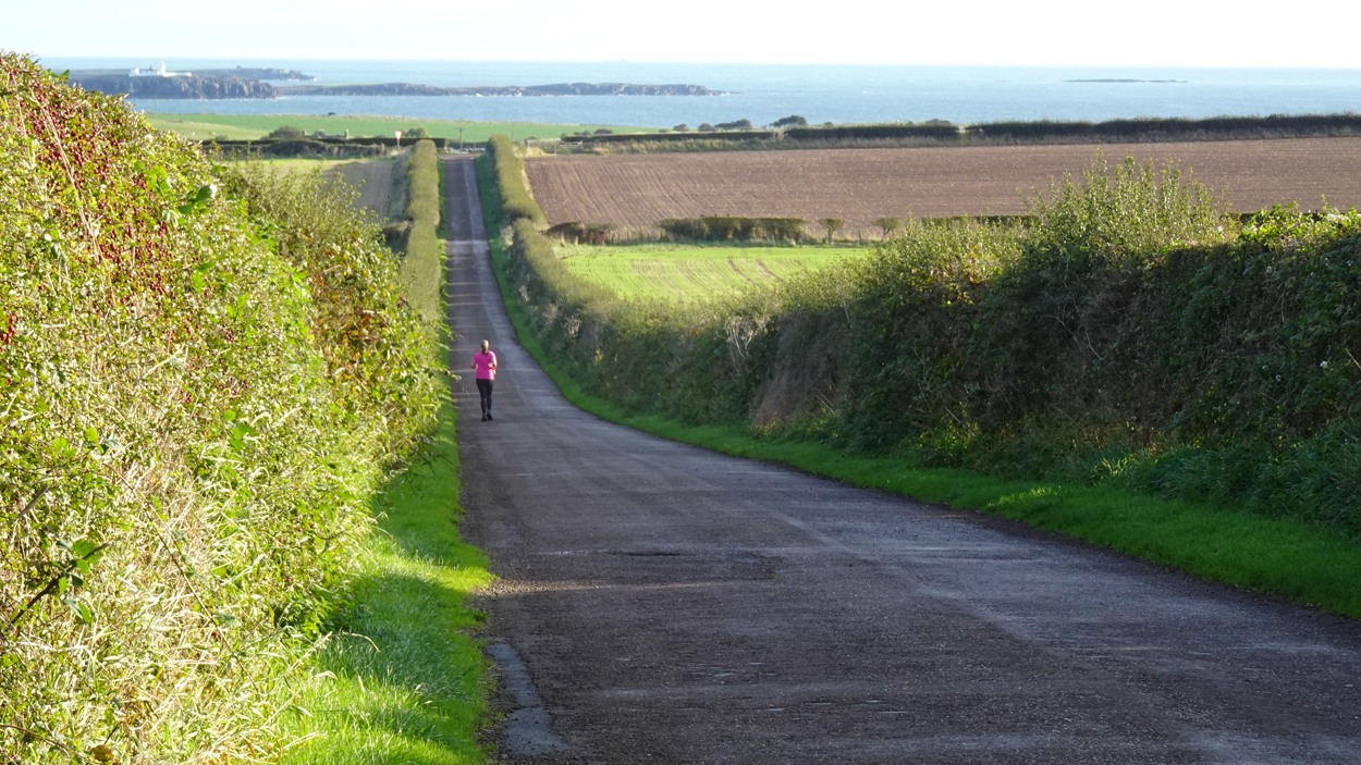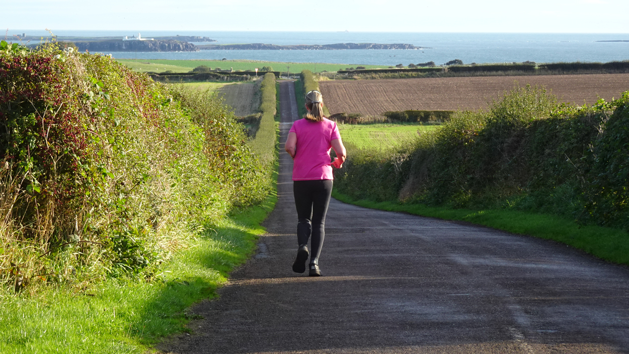 We zijn alweer even in Seahouses maar ik liep nog niets. Eerlijk gezegd liep ik überhaupt maar weinig dit jaar. Ik heb begin dit jaar Evy weer netjes afgemaakt in juni. Daarna liep ik nog 11 keer en dat was het. Tot vandaag want we gaan echt even op pad hier natuurlijk! Stefan en ik hebben wel heel veel gewandeld hier dus dat is op zich ook heerlijk! Voor het hardlopen kiezen we gewoon het wegrondje. Zou ik het eigenlijk nog kunnen? Kom ik wel vooruit? Laten we maar eens proberen. Normaal liep ik hier non stop en ik herinner me nog als de dag van gisteren dat ik ineens het 5 km rondje hier in 30 minuten deed, wat voor mij heel bijzonder voelde. Maar dat is lang geleden en ik heb geen loop conditie op dit moment. Stefan gaat mee op de fiets en maakt wat foto’s. Altijd leuk! Helaas schrijf ik dit stukje pas in 2025 (!) Als ik naar het weer kijk, was het mooi en vrij warm. Als ik naar de resultaten in Garmin Connect kijk, dan bakte ik er niet erg veel van vrees ik. Ik herinner me vooral dat het allemaal voor geen meter liep. Zeker het eerste rondje want dat klokte ik niet eens meer af als run rondje. Ik zie een hele lage cadans en als ik naar de foto’s kijk, lijkt het echt alsof ik werkelijk overal beide voeten aan de grond heb. Vrij lang grondcontact ook. Hoe het ook zij, we hebben het rondje weer gedaan samen en dat is natuurlijk altijd leuk!