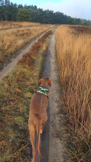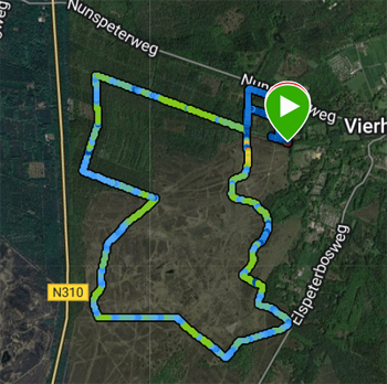 Vandaag weliswaar een rondje van 7 km, maar wel een heel ander rondje dan normaal. Deze keer niet over de heide maar door het bos waar ik vrijdag voor het eerst doorheen liep. Dat brede pad aan het einde liep eigenlijk prima dus dat wilde ik dan vandaag ook doen. Ik wandel eerst door het bos voor warming up over de gebruikelijke route en start daarna op de heide zoals normaal. Fleur kan nog lekker los rennen en dat doet ze dan ook. In plaats van de heuvel rond te lopen, ga ik nu rechtdoor met Fleur alweer aan de riem. Een kort losloop stukje dus vandaag voor haar maar ze heeft alles al gedaan gelukkig. Ik hobbel voor het eerst in tegengestelde richting richting het bos. Grappig dat het er dan allemaal zo anders uitziet. Bij de eerste splitsing ga ik rechtsaf het bos in en ik loop vanaf daar richting de weg. Ik herken alles dus dat gaat goed. Als ik weer bij het brede pad kom wat me rechtstreeks naar de auto zou leiden, sla ik linksaf. Eens kijken of ik daar een stukje verder kan. Dat kan ik op zich maar ik loop wel langs de weg nu. Ook terug, loop ik langs de weg. Fleur doet het prima maar het loopt niet erg prettig allemaal. Het is somber en donker hier. Als ik uiteindelijk weer op het brede bekende pad kom, loop ik het lusje dat ik met Stefan afgelopen weekend heb gewandeld. Dat is weer een stukje extra. Uiteindelijk hobbel ik ver een ander pad terug naar het losloop gebied. dit is het pad waar ik afgelopen weekend met Stefan een vrij verse wolvendrol vond. Grappig genoeg heb ik precies dezelfde afstand gelopen als tijdens mijn heiderondje. Dat was niet nodig en op zich niet per se de bedoeling. Ik vond het wel leuk om in 2024 nog 250 km te lopen om gewoon een mooi getal te hebben maar verder maakt het natuurlijk niets uit. Ik ben uiteindelijk dit jaar op 15 oktober weer begonnen en heb tot nu netjes doorgelopen (op de midweek Vlodrop na overigens en dat zie je dus meteen aan de afstand). De 4000 km per jaar is nog ver weg maar of ik dat nog moet willen met alles wat we hier doen en de afstanden die gewandeld worden extra is maar de vraag. Voor nu stel ik mijn jaardoel voor 2025 vast op 1.250 km. Ik ben benieuwd!