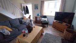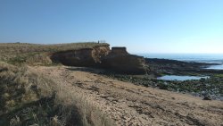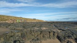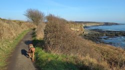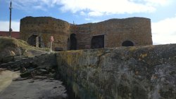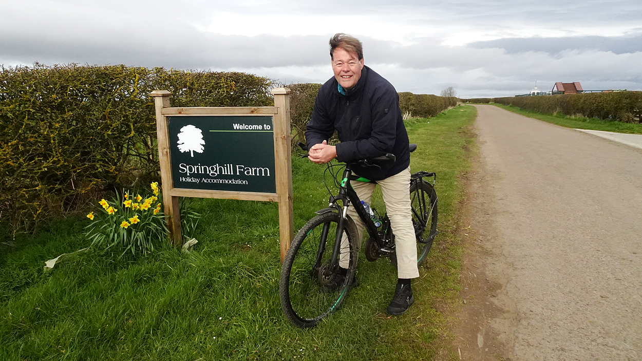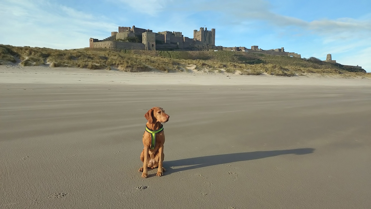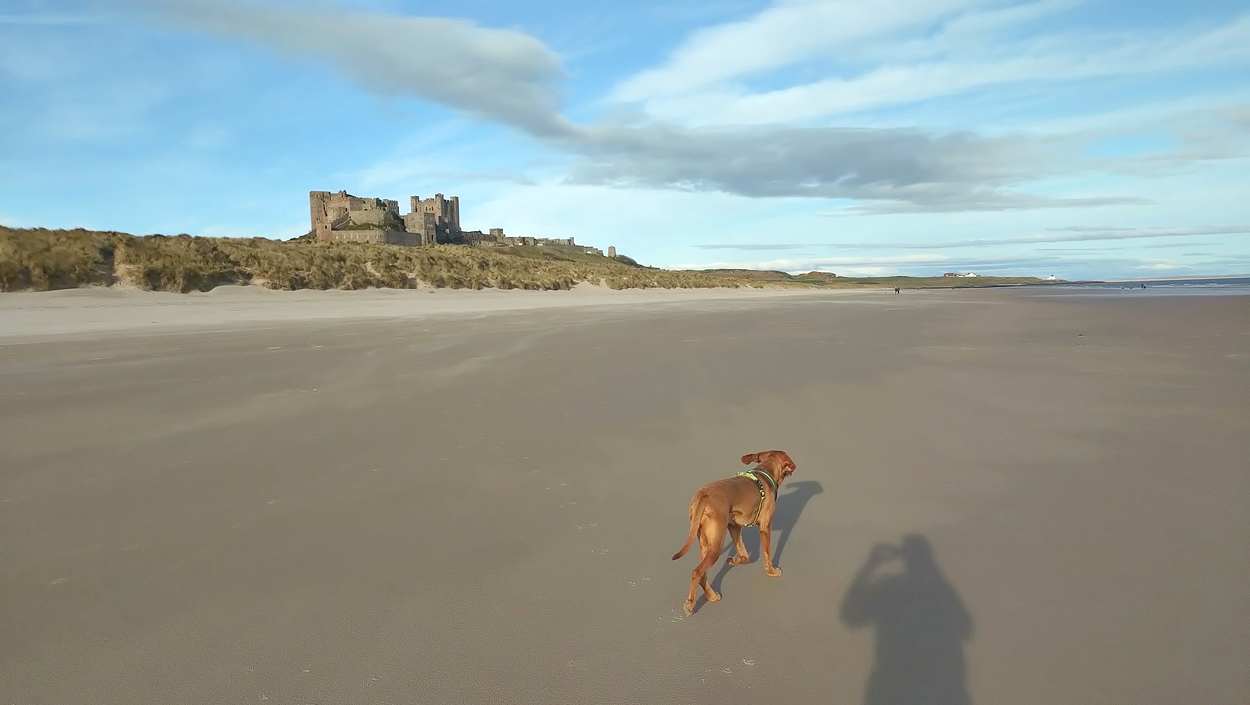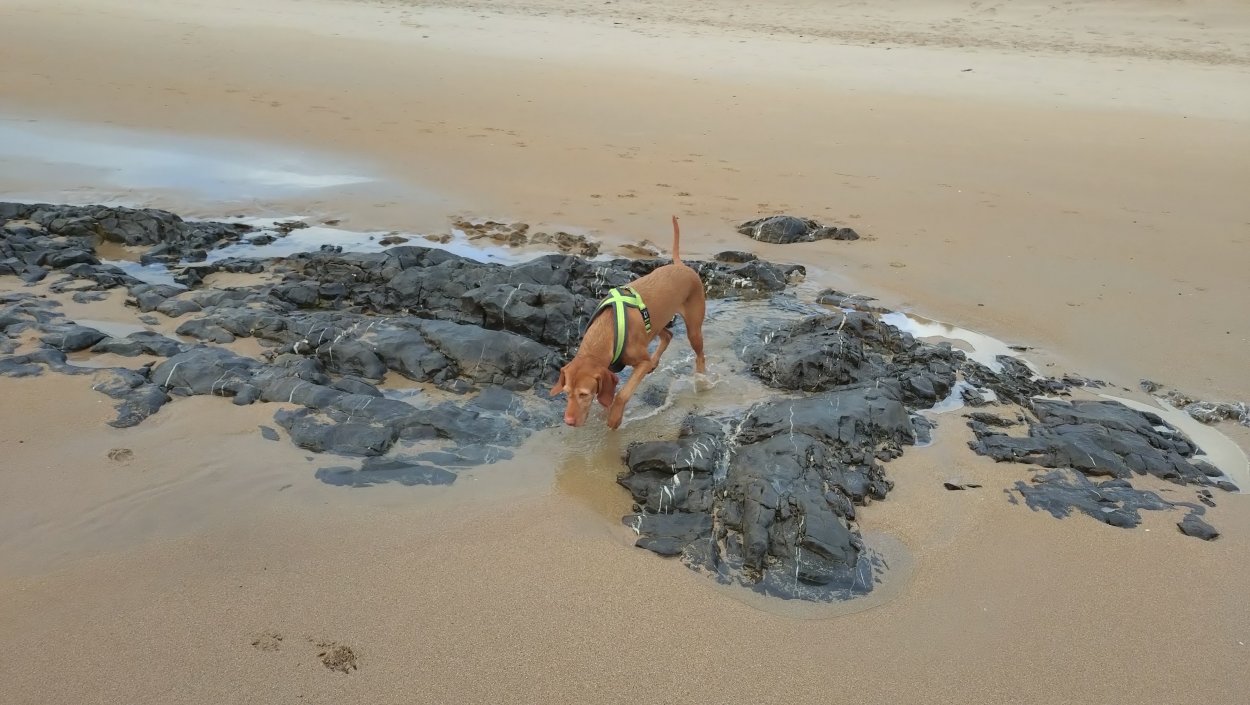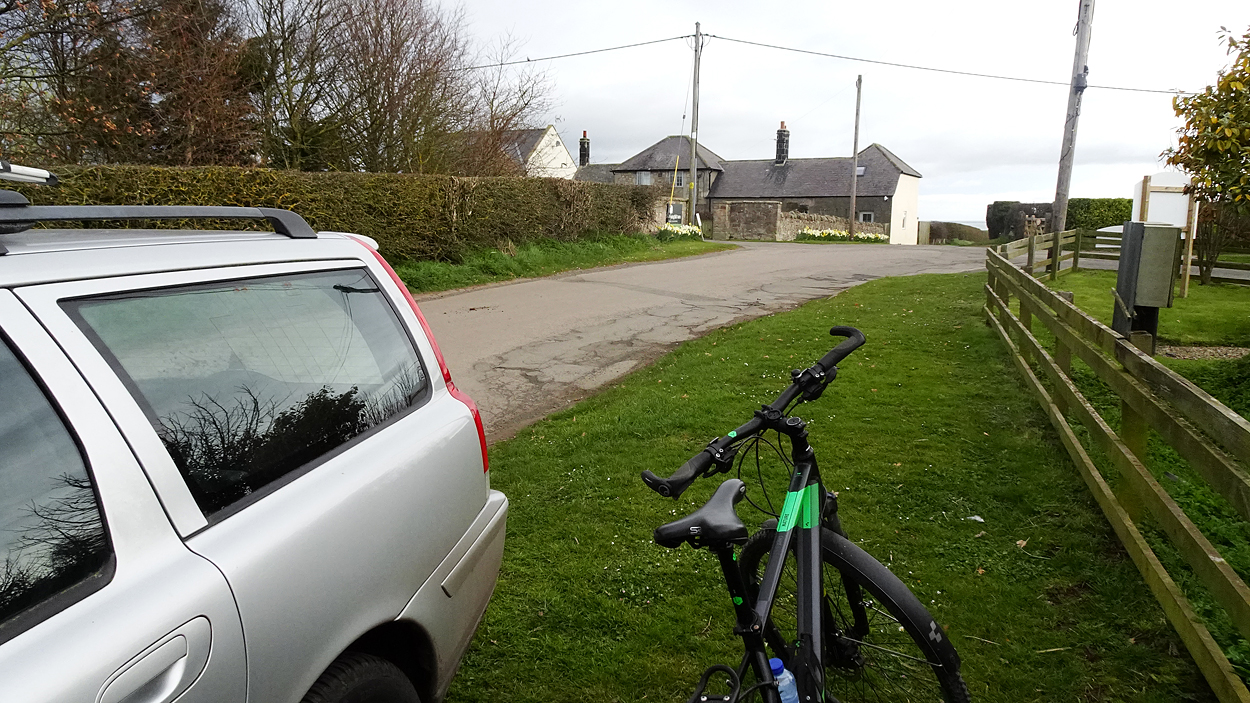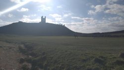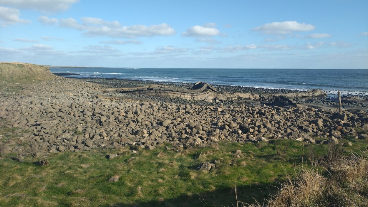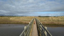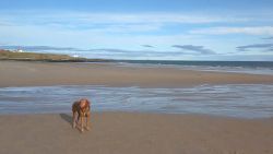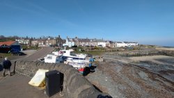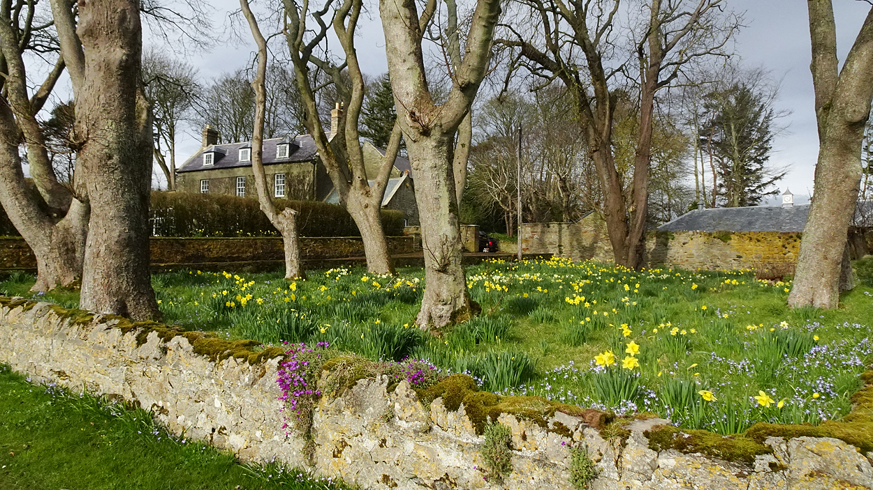 Vandaag weer tijd voor een rondje hier. Ik heb niet erg lekker geslapen maar ik wil wel op pad. Omdat ik dacht dat het enorm zou waaien vandaag, had ik in bed bedacht dat ik bij Belford zou gaan lopen. Toen ik beneden kwam, bleek het te regenen. Dat was dus een ander weer type dan ik dacht. Maar zowel met regen als wind is het strand eigenlijk niks. Dus na even nadenken, ben ik dan toch maar op pad gegaan voor mijn Belford rondje. Volgens het verslag uit 2020 zou dat 18 km zijn maar ik betwijfelde dat. Iets korter dacht ik en dat bleek achteraf ook te kloppen, want ik had 17.2 km op de teller en ook in 2016 had ik dat. Eerst maar eens op pad dan. Petje mee, kleine rugzakje en mijn dunne giletje. Qua temperatuur niks nodig denk ik. Watertje voor woef en deze keer wel een bakje (mijn eigen waterbeker voor op reis) en een bueno reepje voor het geval dat. Vooraf had ik wel een Slimfast drink genomen. Ik parkeer in het dorp en al snel zijn we op weg. Het regent nog licht en ik doe mijn petje op. Ik vergeet dus een foto te maken van het dorpje zoals ik anders wel doe. Na de pharmacy rechtsaf en over een stil weggetje starten maar. Fleur is al los. Ik loop langs een soort mislukt kasteeltje richting een boerderij. Zo gek dat je dan over het erf van die boerderij loopt. Maar er gaat echt een route overheen dus je moet gewoon zo lopen. Ik doe Fleur wel even aan de riem dat is wel zo netjes natuurlijk. Verder op weer los en door.