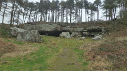 Nu dus gewoon linksaf langs een ander watertje met een hut. Ik hobbel verder. Normaal kom ik nu langs een prachtig stukje met mooi uitzicht maar met dit weer is er niks aan. Ik hobbel naar beneden. Best zwaar allemaal. Zouden die paden vorige keren ook zo uitgesleten zijn of kan ik er nu niks van dan? Geen idee. Aan het einde van het pad kom ik 2 jonge runners tegen. Zij komen me tegemoet. Gelukkig ben ik die nu kwijt. Ik sla linksaf om het laatste stukje richting de cave te lopen. Ook hier geen uitzicht. Wel weer die rare paadjes. Ik wordt toch best vermoeid. Of is het een ander gevoel? Ik weet het eigenlijk niet. Wat is het ver naar de cave. Pas na 10 km ben ik eindelijk daar. Omdat het geen mooi weer is en ik er ook een paar dagen geleden was met Stefan, maak ik maar een paar fotootjes.