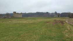 Nu gaat het opschieten gelukkig. Even over het weiland en aan het einde linksaf terug naar het mislukte kasteeltje. Ik ben er gelukkig want ik ben best moe. Het duurde allemaal lang. Ik hobbel door het dorp terug naar de auto. Na 3 uur zijn we weer terug bij de auto.