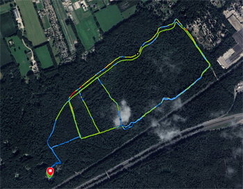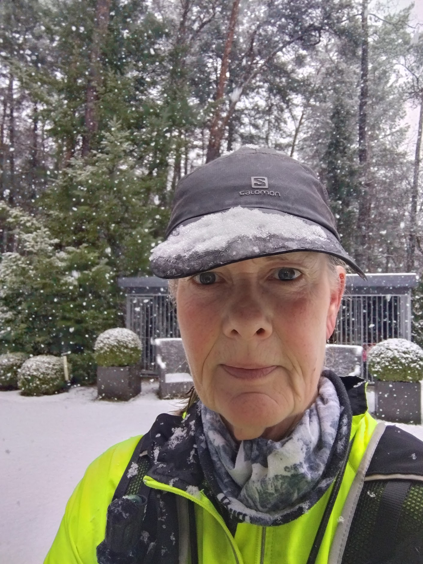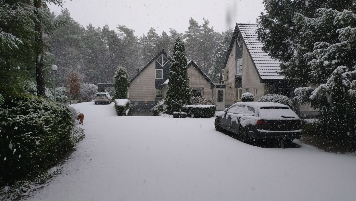 Beter toch? Ik zie later dat ik piepkleine stapjes nam en ook een lage cadans had, maar met die sneeuw ben ik ook echt voorzichtig. Op naar de volgende ronde maar weer. Dit zie ik als ik thuis kom nadat het een uurtje gesneeuw heeft terwijl ik onderweg was: