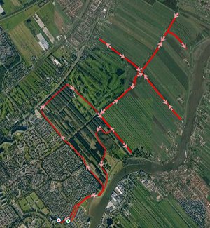 Vandaag ga ik weer op pad voor een rondje. Wafje gaat weer mee en ik vertrek weer vanaf huis. Dat maakt echt veel uit qua tijd en zo meteen binnen komen is ook best fijn. Niet eerst nog even een stukje met de auto rijden na afloop en weer afkoelen! Het is vreemd weer en omdat het waait en misschien ook wel gaat regenen, trek ik weer mijn Fast wing jackje aan van Salomon. Omdat ik de Flipbelt om heb, kan ik dat jasje eventueel – net als gisteren – opbergen in de belt maar ik denk dat ik het vandaag aan ga houden. Ik doe de warming up weer langs de dijk en zet toch maar de beacons op de telefoon aan voor de zekerheid, zodat ik een kaartje en wat gegevens zal hebben als de garmin 610 er eventueel weer mee op houdt. Dat gebeurde al eerder tijdens een run en ook laatst op de fiets. Misschien is de accu niet meer goed maar ik neem aan dat dit kleine stukje toch wel moet kunnen. Dat blijkt overigens niet het geval dus ik ben blij dat ik de gegevens nog heb van de telefoon.