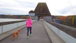 Vandaag vertrekken we naar het Sauerland voor een aantal dagen lekker buiten zijn. We hebben plannen om te lopen, te tennissen, veel te slapen en te wandelen. Aanvankelijk hadden we weinig zin en wilden we het uitstellen of dichterbij huis blijven maar vanmorgen hebben we toch alles snel ingepakt en gaan we op weg. Ik had al een eerste route gemaakt rond de Mohnesee waar ik in 2011 ook ben geweest met woef tijdens een verblijf in Werl. Dat was destijds prachtig en ik wil het graag aan S. laten zien. Ik vind het eigenlijk wel bijzonder dat ik hier 5 jaar geleden ook was met wafje. Wat is er veel gebeurd in die 5 jaar al! Na ruim 3 uur rijden komen we op de parkeerplaats aan. Een andere plek dan ik eigenlijk had bedoeld omdat we verkeerd reden, maar eigenlijk beter omdat er ook toiletten zijn waar we ons na de run kunnen omkleden! Parkeren kost 2 euro voor 3 uur dus niet al te duur en het is lekker rustig. Tot 18.15 kunnen we daar staan en dan hopen we toch wel terug te zijn omdat het dan ook al donker is. Eerst nog even naar de Sperrmauer kijken waar we vlakbij zijn en zullen beginnen met de run.
