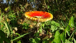 We parkeren bij de kanoverhuur en gaan op pad. Het is stralend weer maar best fris. Onderweg zie ik nog een vliegenzwam waar ik snel een foto van maak.