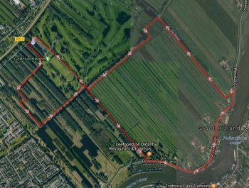 Ik loop met wafje richting de dijk en wil daar de dijk oplopen met haar aan de riem. Maar – zoals gebruikelijk – stopt madam en wacht totdat ik weer terugkeer zoals ik normaal ook doe. Maar ik wil omhoog! Ik spreid mijn armen, loop door en dat begrijpt ze. Ze komt snel aanrennen en we kunnen weer verder. Ik verlies hier dus wel tijd maar dat is niet erg, ik zie op mijn horloge ook wel ongeveer hoe snel ik loop en bij welke hartslag.