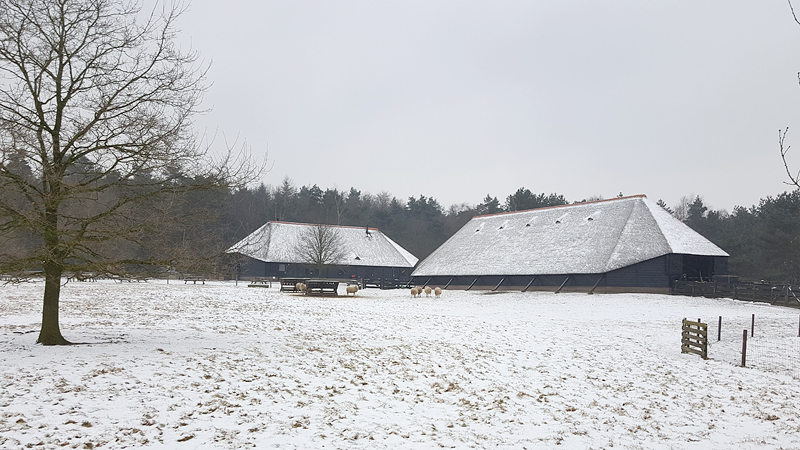 S. maakt nog een kiekje bij de schaapskooi, ik doe dat ook in het voorbij lopen. Stom genoeg namen we vandaag geen camera mee dus kunnen we alleen onze telefoons gebruiken.