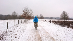Als we weer vlakbij de auto zijn, lopen we nog een klein lusje omdat we nog even tijd hebben. Aan het einde komen we nog iemand tegen die een fietscomputertje heeft gevonden. Omdat ze er een heel stuk mee heeft gelopen, besluiten we het ding toch maar mee te nemen en wat oproepjes op internet te plaatsen. Wat zonde! Jammer genoeg moeten we er daarna echt mee ophouden. Na ruim 16,5 km staan we weer bij de auto. Vandaag was een geschikte dag geweest voor een langere run maar het is niet anders. Ik kleed me achter de auto even snel om in normale en droge kleding en daarna gaan we op pad voor onze afspraak. Misschien kunnen we dit weekend nog een keer hier gaan lopen! Morgen gaan we naar de Wandel- en fietsbeurs in Utrecht dus dan komt er niets van maar misschien zondag.