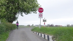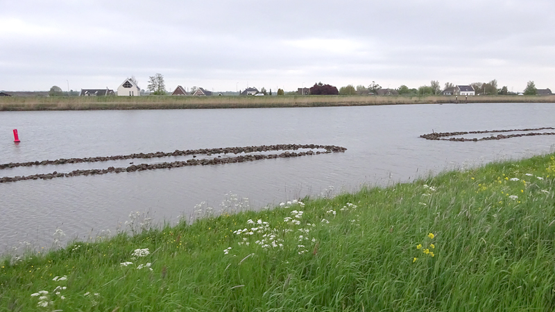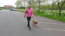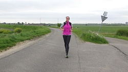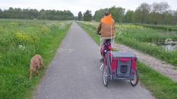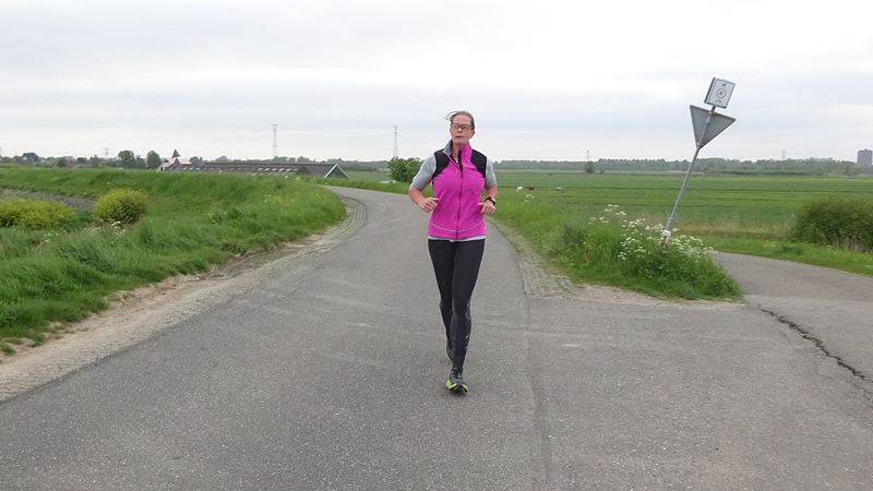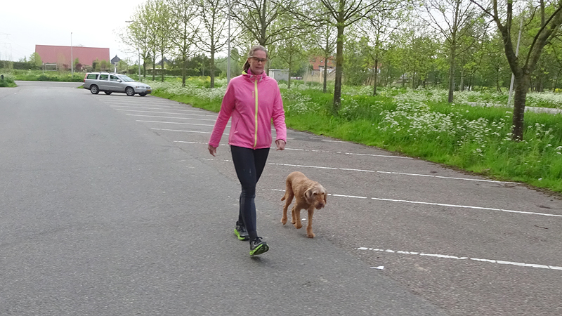 Tijdens de eerste kilometer heb ik dat jackje natuurlijk al uit en terwijl S. dat lief voor me opruimt, loop ik vast door. Mijn Garmin zegt op dit eerste stukje altijd dat ik heel langzaam loop maar dat kan me niet zoveel schelen. Eerst maar eens op gang komen en de dijk op. Waf zit al in de kar want ze liep alleen maar graspollen en hoopjes aarde te vreten en daar worden we soms een beetje gestoord van. Jasje aan en in de kar dus! Al gauw lopen we op de dijk. Eigenlijk gaat het lopen niet eens zo slecht. Ik ga maar eens kijken wat ik ervan kan bakken en langzaam neemt het tempo wat toe. Zal ik 2000-tjes gaan doen ofzo?