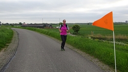 We lopen over de ‘s Gravenweg en langs de koeien. Het gaat prima en mijn kilometers worden elke keer een stukje sneller. Dat heeft ook met de wind te maken denk ik maar ook met mijn gevoel. Als je net begint aan een snelle lap wil je niet tekort komen maar als je over de helft bent, dan voel je wel dat er nog meer in het vat zit. Dit is dus een mooie oefening voor de HM in Edinburgh. Mooi op tempo beginnen en na de eerste helft voelen hoe het gaat en versnellen. En dan niet te gek maar een klein beetje. Zelfs een paar seconden per kilometer maakt al uit op de eindtijd weten we inmiddels. Vorig jaar ging het erg goed en het zou gewoon leuk zijn als het dit jaar weer net iets beter zou gaan.