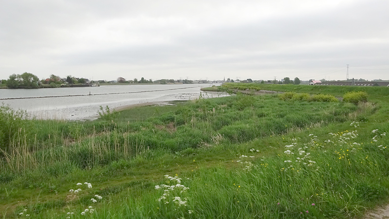 Bij elke afslag vraagt S. waar ik heen wil. We lopen de eerste voorbij en de tweede ook. Op de dijk staat een forse wind maar het gaat goed. Eens kijken waar ik naar kan doortrekken. Mijn tempo ligt rond HM tempo en dat voelt goed. Natuurlijk ben ik nu niet meer zo spraakzaam en zeker niet met de wind. Mijn ademhaling hou ik op 2/2 omdat ik dat nu eenmaal makkelijk vind. Het lopen gaat goed maar ik ga best snel als training. Te lang heeft geen toegevoegde waarde dus hoe ver ga ik nu? Ik besluit een lap van 5.000 mtr te maken, even te wandelen en daarna nog een snelle 5.000 mtr lap te doen als dat zou lukken. Dan zou ik 10 snellere kilometers hebben gedaan. Continu training en snelheids training! Eerst maar eens het eerste lapje afmaken en dat gaat prima. We lopen het natuurgebied weer in en doen waf uit de kar. Ze mag hier lekker een stukje snuffelen en draven.