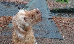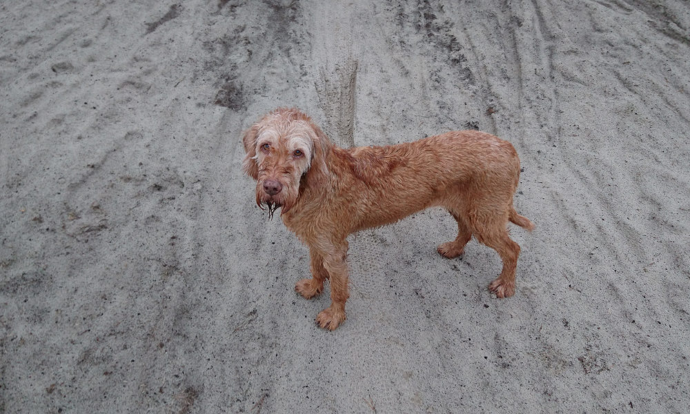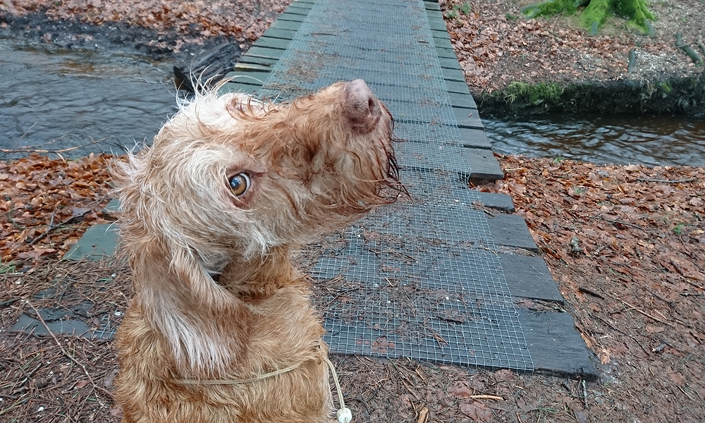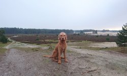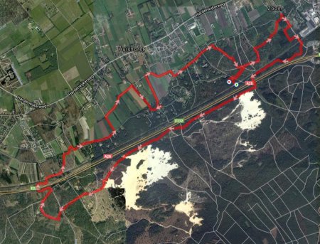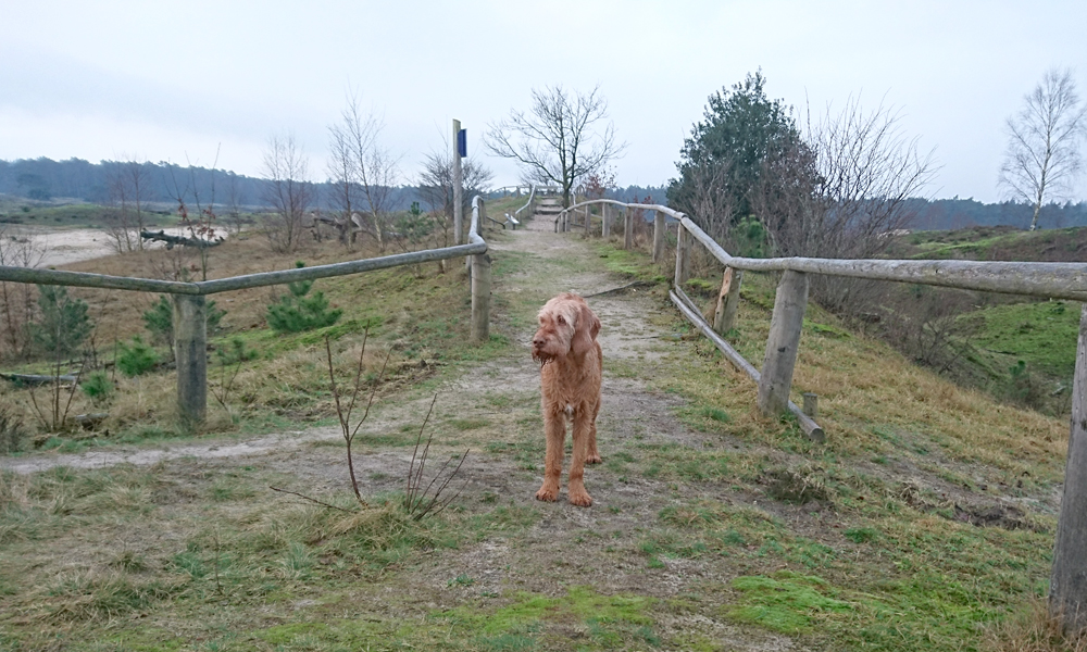 Maar vandaag vertrek ik voor het eerste rondje meteen met wafje naar buiten. Ik loop eerst door het bos aan de overkant waar ik meteen aan de praat raak met iemand uit de buurt met een jonge hond. Daarna hobbelen we door. Ik geloof dat ik eindelijk een beetje richting gevoel ga krijgen door het bos hier dus dat komt ook goed uit. Ik steek het spoor over en loop tussen snelweg en spoor weer terug. Ik ga straks zeker een andere route kiezen omdat er een ATB route verreden wordt vandaag. Ik zie overal de pijltjes hangen dus dat lijkt me geen goed idee met mijn dove wafje.