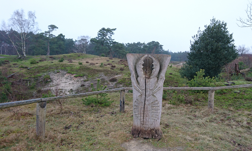 Daarna loop ik langs het hek langs de zandverstuiving verder weer richting Hierden. Ik loop bij de Klaren weg weer een stuk verder zoals ik twee maal eerder gedaan heb. Dat is erg mooi en ik weet dat ik makkelijk straks weer over de snelweg kan en via de Oudeweg een leuke route terug kan nemen. Zo gezegd zo gedaan. Eerst een foto van de zandverstuiving opgang. Ik ga er vandaag even niet heen.