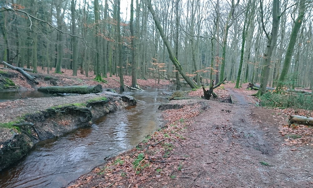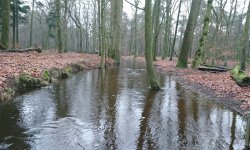 Als ik weer op bekend terrein kom neem ik even een andere route die me langs de beek zal voeren. Ik weet nu dat de beek hier echt loopt omdat we vorige week hier langs gefietst zijn. Ik kijk dus op de kaart en kies een prima pad. Dat is echt mooi om te zien en te lopen.