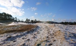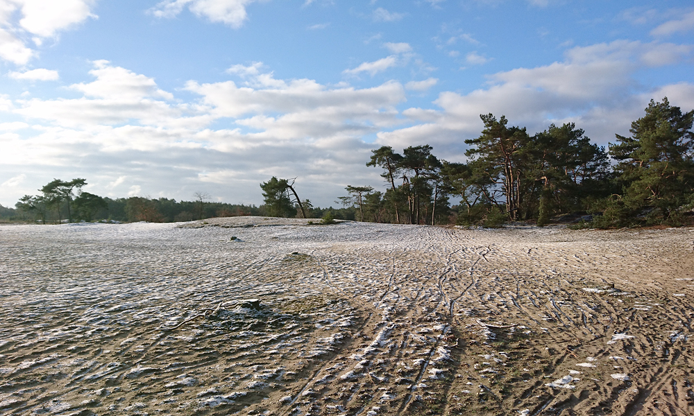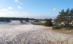 Gisteren heb ik een mooi rondje met woefje gelopen en vandaag gaan we ook weer op pad. Ik heb nog geen idee wat ik wil gaan lopen maar we gaan gewoon op pad. Meteen als ik vertrek gaat het even hagelen. Niks aan te doen, het zal wel weer droog worden neem ik aan. Gisterenavond sneeuwde het opeens. Dat is allemaal alweer weg maar de hagel laat wel nu een heel dun laagje achter. Wel mooi. Eerst lopen we nu even een rondje door het bos aan de overkant en daarna gaan we naar de zandverstuiving. Daar maak ik ook een kiekje natuurlijk.