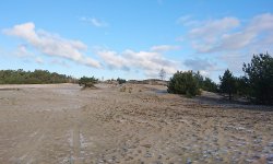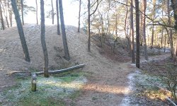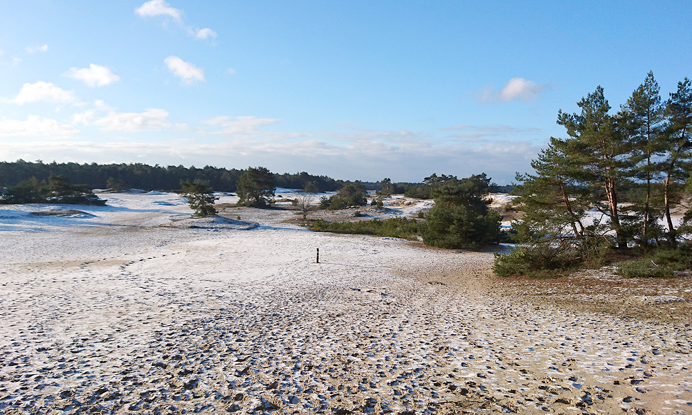 Ik loop nu door het bos maar zie op de kaart dat er nog een zandverstuiving ligt even verderop. Daar gaan we heen!