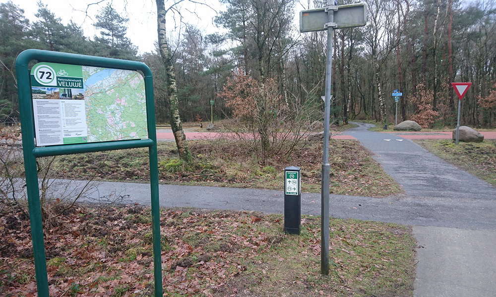 Ik loop door en zo over het fietspad loopt het een stuk makkelijker. We schieten nu tenminste een beetje op inmiddels. Ik loop toch door tot het einde. Zal ik het fietspad volgen en dan over het fietspad richting het Ecoduct gaan? Of zou dat te ver zijn? Ik sla rechtsaf en volg deze keer het fietspad even naar links. Daar liep ik nog niet eerder geloof ik en uiteindelijk kom ik bij een knooppunten netwerkje uit waar ik alle kanten op zou kunnen.