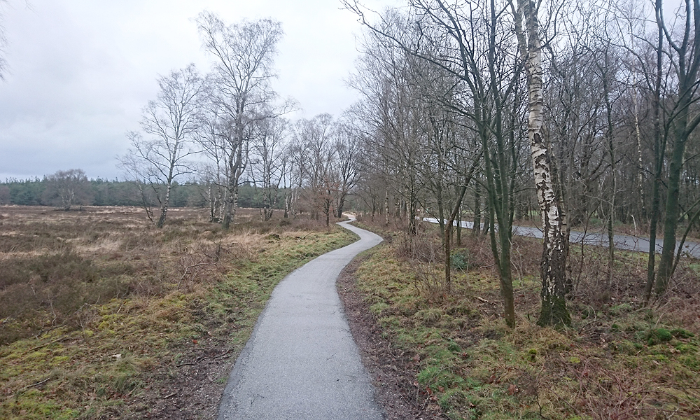 Ik loop dus rechtdoor over het fietspad. Waar zal ik dan weer rechtsaf slaan? Ik heb eigenlijk helemaal geen zin in dat rottige zachte pad richting de Klarenweg vanuit het Zuiden maar is de lus verderop niet veel te ver? Eerst maar eens een stukje doorlopen.