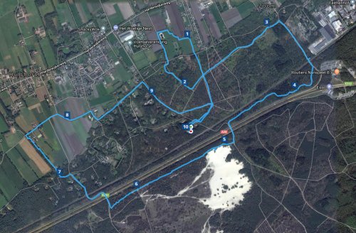 Ik steek het spoor over en loop weer de andere kant op. Het is maar warm vandaag en ik had wel een ander shirtje aan kunnen trekken. De zon schijnt zelfs terwijl het vanmorgen regende. Ik heb mijn petje voor de zekerheid ook gewoon aan de flipbelt gehangen.