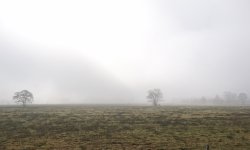 Het is heel apart zo over de velden. Toch weet ik zeker dat de zon ergens schijnt want af en toe piept er inmiddels een zonnestraaltje door de mist heen. De zon doet dus haar best om de mist weg te branden en dat gaat vast lukken. Ik wil vanmiddag wat in de tuin doen dus dat komt goed uit.