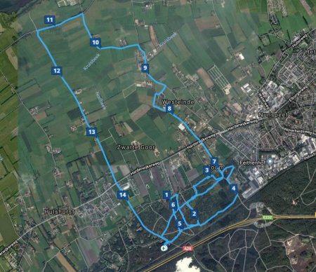 Na 15 km sta ik weer voor de deur. Op naar de volgende ronde maar weer.