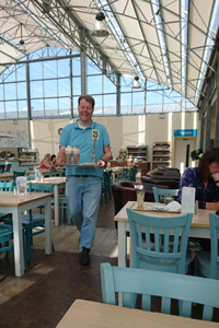 Na 13 km staan we weer bij de auto. Toch langer dan gedacht maar misschien was het stukje over het strand om naar het water te komen ook langer. Wafje deed het prima maar laat zich wel in de auto tillen. Ze wil niet springen en dat hoeft ook niet. Op naar huis. Vanmiddag fietsen we nog even naar het garden centre voor een lunch en een beeld voor de tuin.
